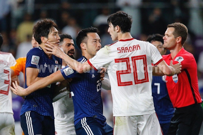* در دقیقه 14 زمانی که داور استرالیایی به سود ژاپن اعلام خطا کرد، اشکان دژاگه به تصمیم او معترض شد.