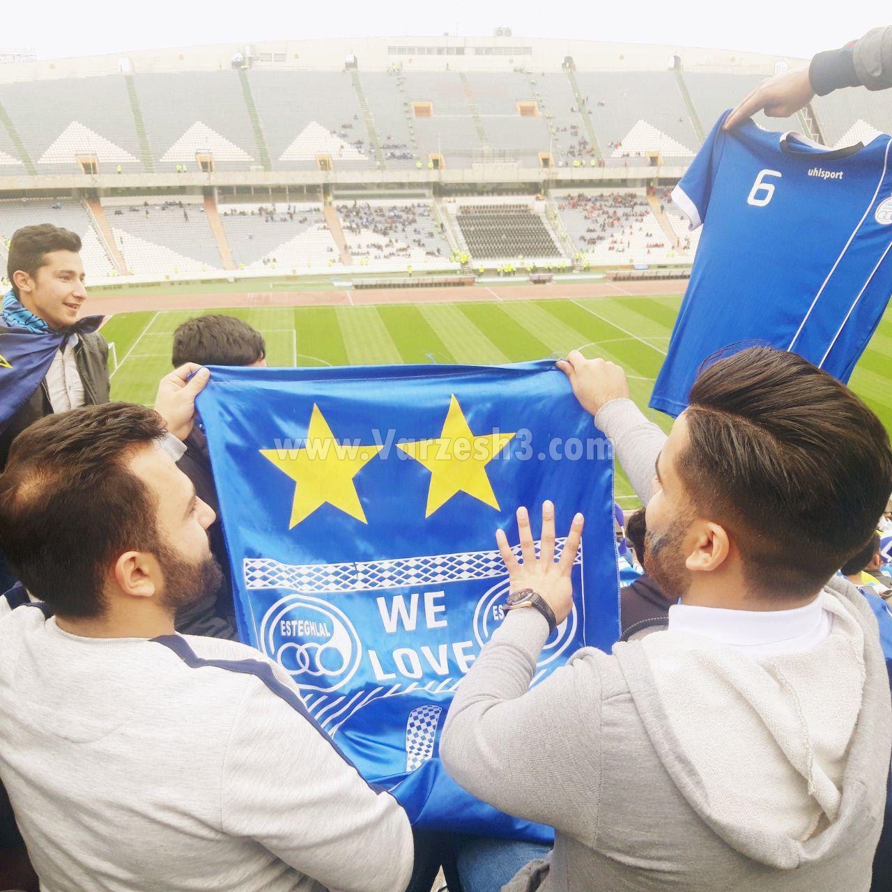 ۱5:۱۷- با ورود بازیکنان استقلال پرچم های آبی روی سکوها به احتزاز در آمد و جلوه خاصی به فضای استادیوم داد.