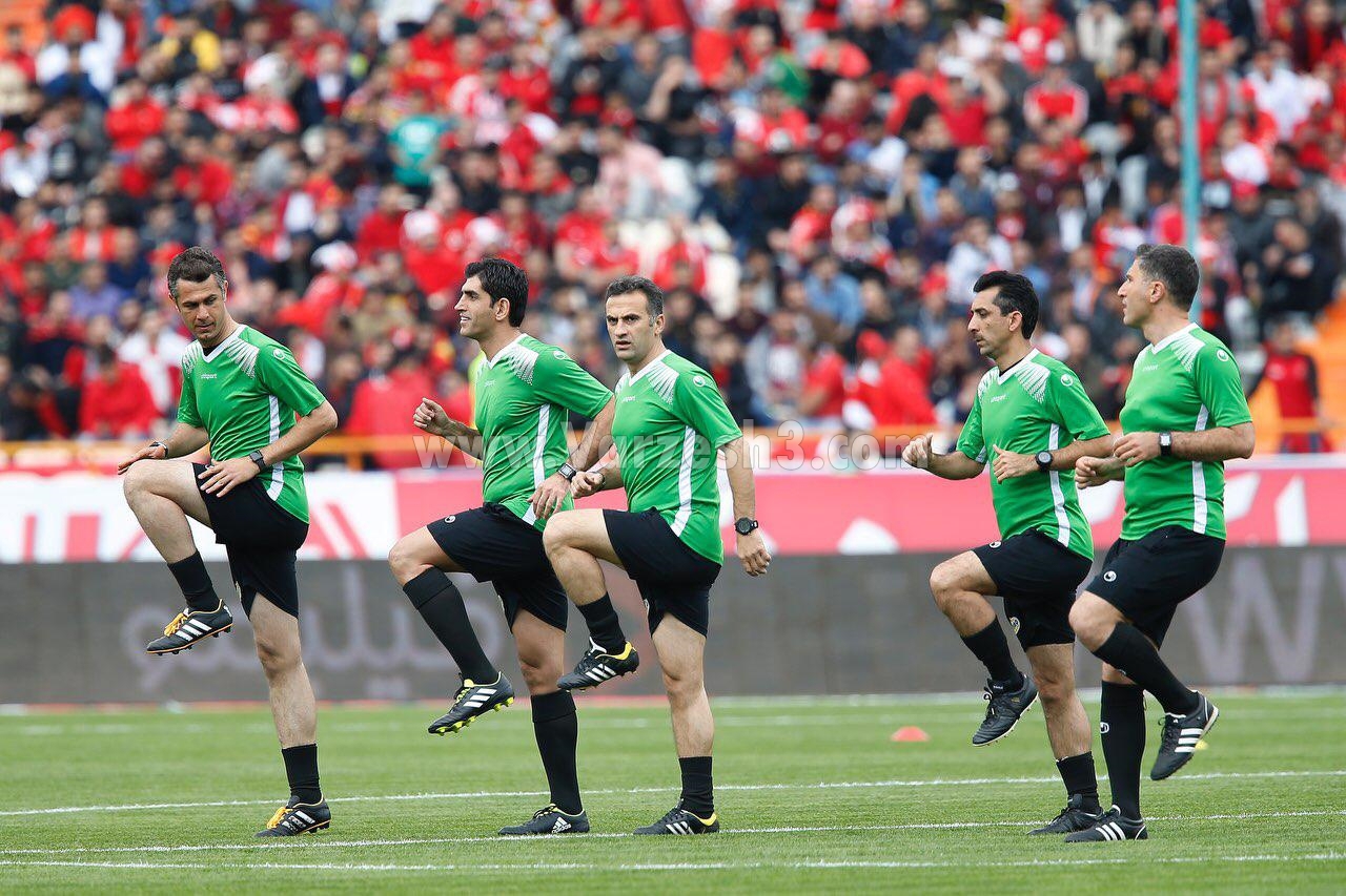 ۱۵:۱۴: تیم داوری سبزپوش بازی وارد چمن شد و قدم زنان عرض میانه زمین را طی کرد و با حضور جلوی سکوها عکس یادگاری گرفتند.