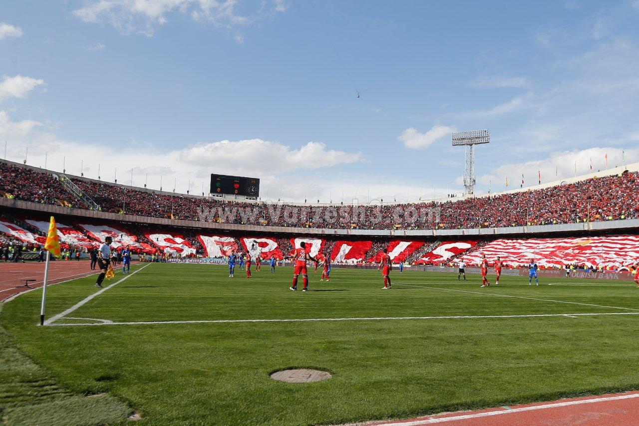 ۱۱:۰۲ - ورزشگاه آزادی در فاصله ۵ ساعت تا شروع بازی؛ نکته مهم عدم برنامه ریزی برای شکلی زیبا روی سکوها از روی کانون های هواداران است.