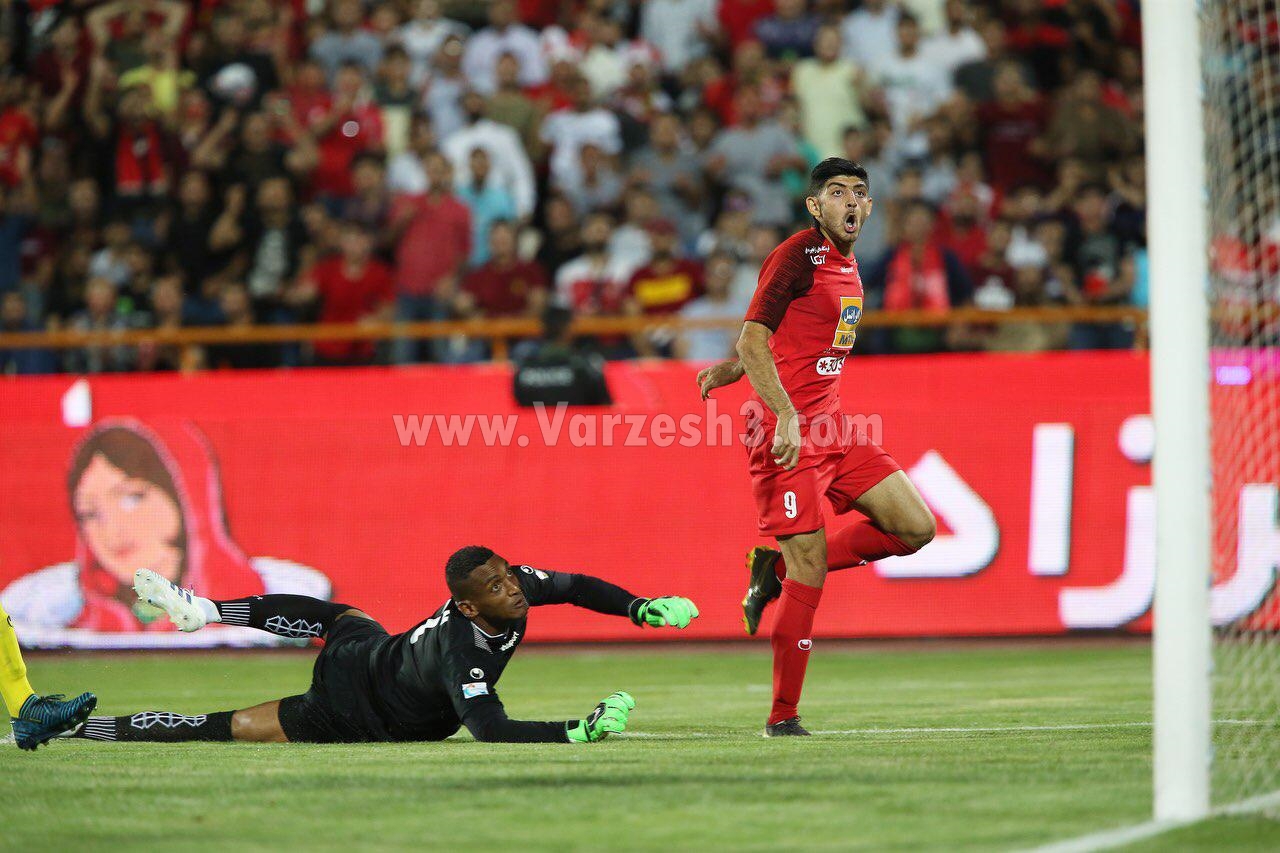 مهدی ترابی نگران گل نشدن توپ. به چهره او و صورت جمع شده اش نگاه کنید . اما این توپ در نهایت وارد دروازه دخسوس شد.