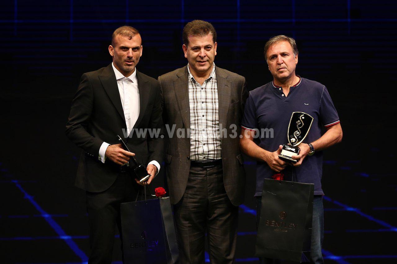 از استقلال نیز به جز بلبلی، جواد زرینچه و وریا غفوری هر کدام جدا خود را به سالن رساندند تا آماده رقابت با دیگر مدعیان باشند. بعد از آن نوبت به مقامات رسید؛ ابتدا مهدی تاج آمد و سپس ابراهیم شکوری پس از پاسخ به خبرنگاران از فرش قرمز عبور کرد. محمدرضا داورزنی، معاون وزیر نیز آخرین فرد مسئولی بود که برای حضور در جشن آمد. بعد از آمدن یحیی گل محمدی و فرهاد حمیداوی از شهر خودرو همه خبرنگاران و عکاسان راهی سالن شدند تا مراسم شروع شود.