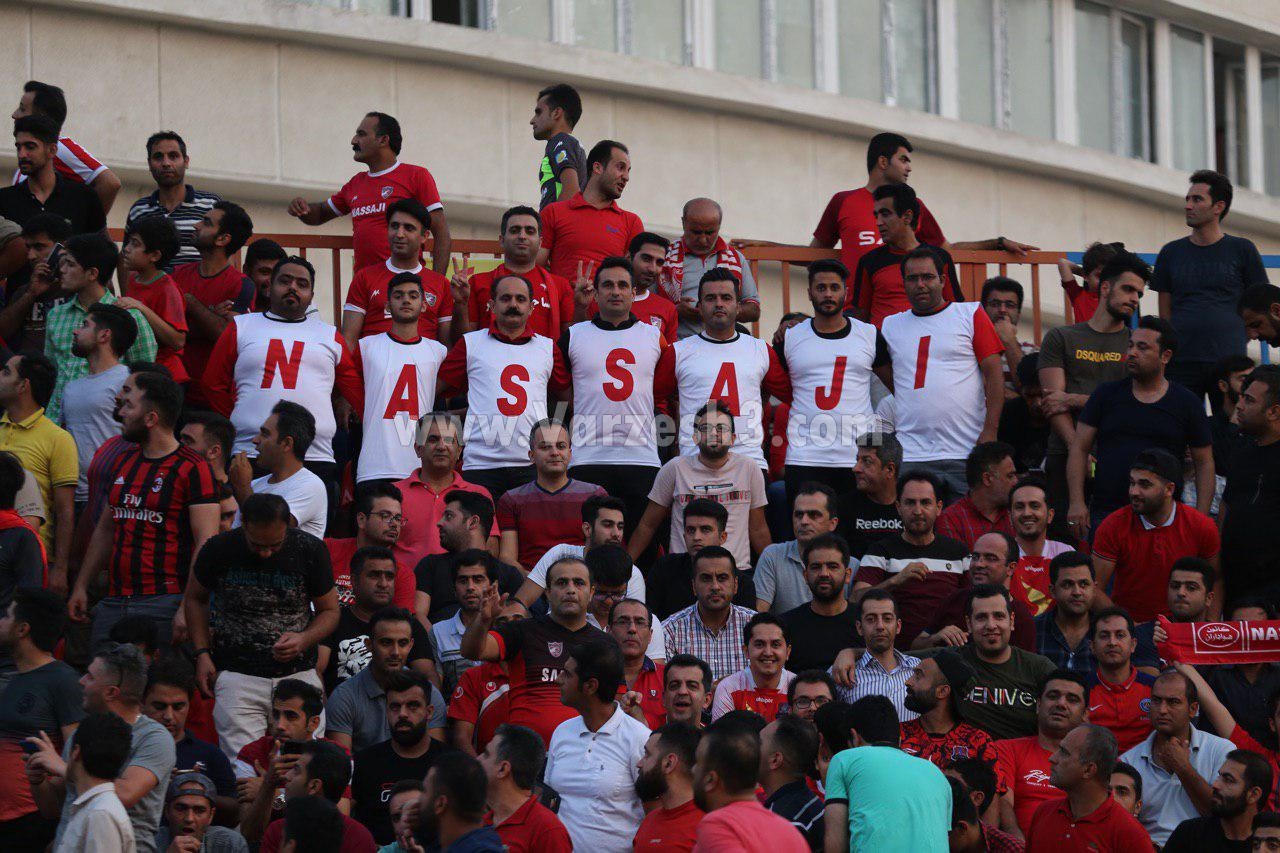 * هواداران نساجی طرح موزائیکی نام این تیم را روی پیراهن خود به نمایش درآوردند.