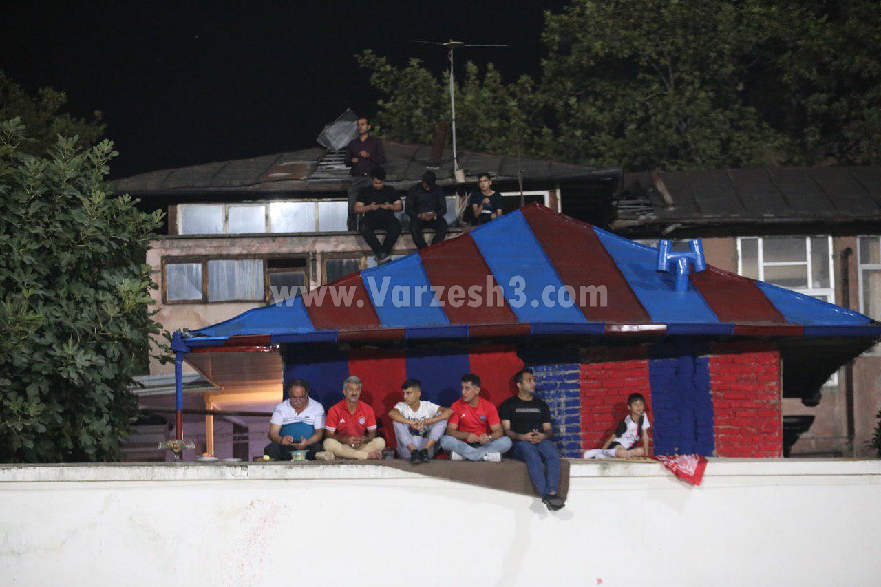 * همسایه معروف ورزشگاه وطنی با نمایی جالب به دیوارههای منزل خود در حال تماشای بازی نساجی و پیکان است.