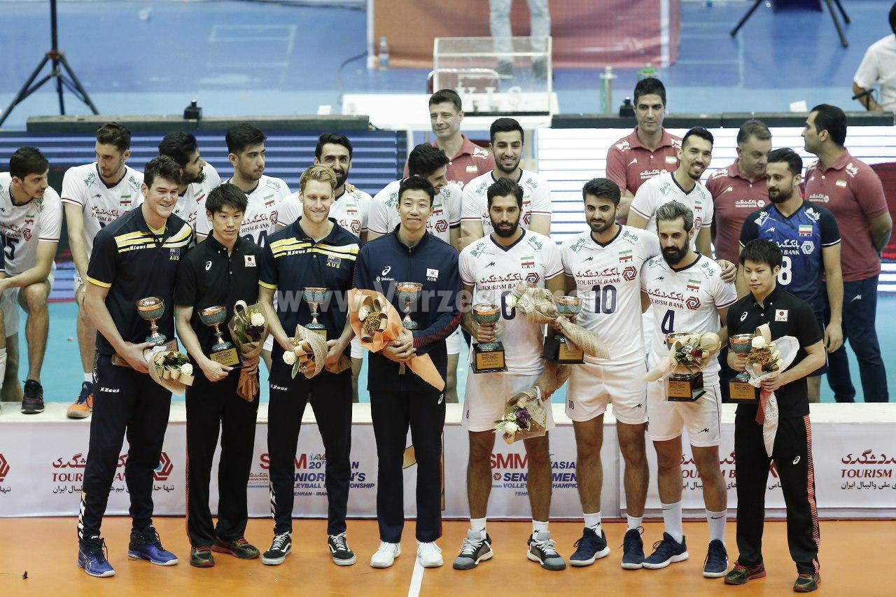 توماس ادگار، ستاره تیم ملی استرالیا، عنوان ارزشمند ترین بازیکن این دوره از رقابت ها از به دست آورد. یوکی ایشیکاوا از ژاپن و ساموئل واکر از استرالیا هم جایزه بهترین دریافت کننده را گرفتند. همچنین تاکاهیرو یاماموتو از ژاپن به عنوان بهترین لیبرو دست پیدا کرد. اما سه جایزه دیگر از آن ستاره های والیبال ایران شد و سه بازیکن محبوب تیم ملی همگی در پست های خود، برترین شدند.
