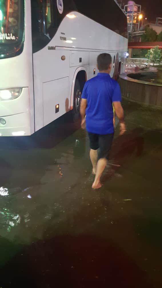 آنها که از ساعت 16 در ورزشگاه حاضر بودند و قرار بود ساعت 16:50 دقیقه پرواز انجام شود، به دلیل شرایط آب و هوایی تاخیر در این پرواز اعلام شد. آنها که در سالن انتظار حضور داشتند با بالا آمدن آب در این سالن، سالن را ترک کردند و سپس از سمت فرودگاه پروازهای خارجی خود را به هواپیما رساندند.
