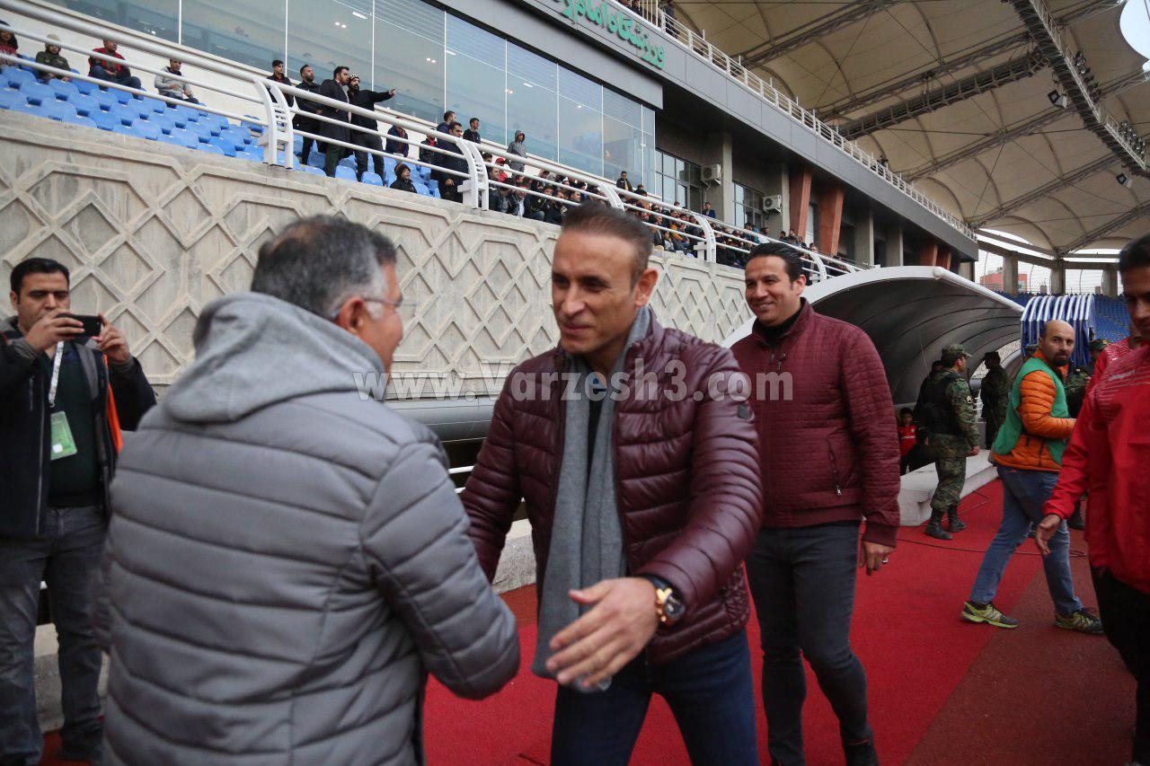 * بهنام برزای و سید عبدالله حسینی که سابقه بازی در تیم مشهدی را دارند، قبل از بازی به سمت گل محمدی آمدند و از او برای حضور در میدان رخصت گرفتند.