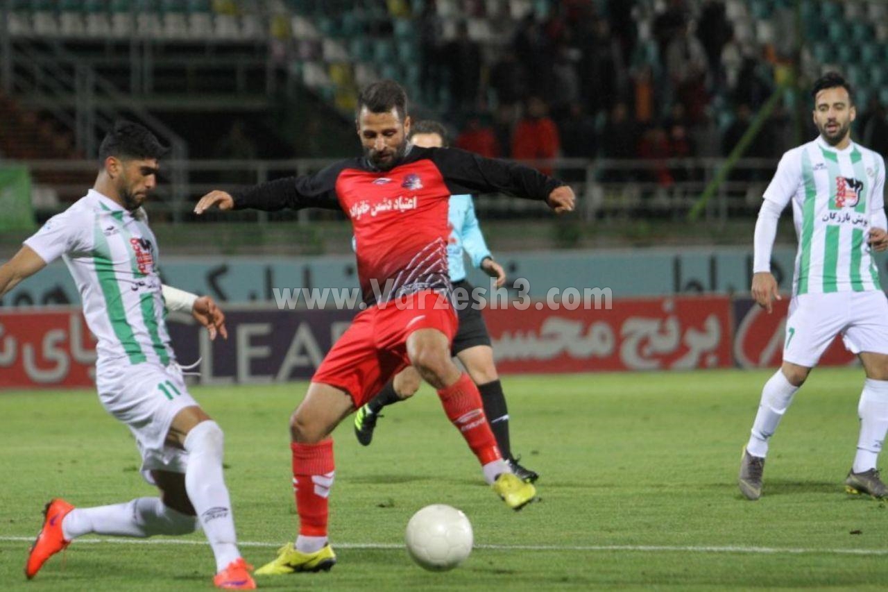 54:20- خلعتبری با سرعت بالا وارد محوطه جریمه نساجی شد که ضربه او را حقیقی در دو مرحله جمع کرد.
