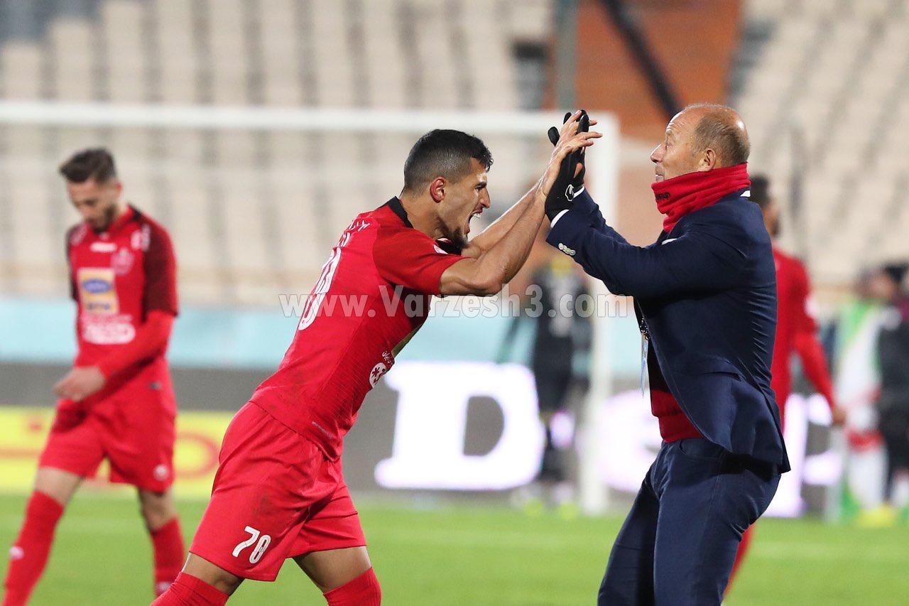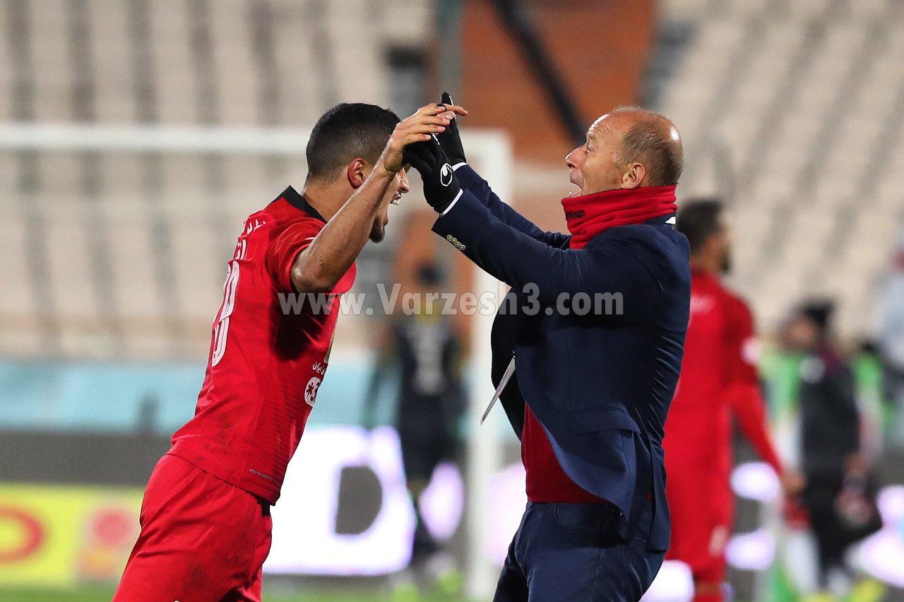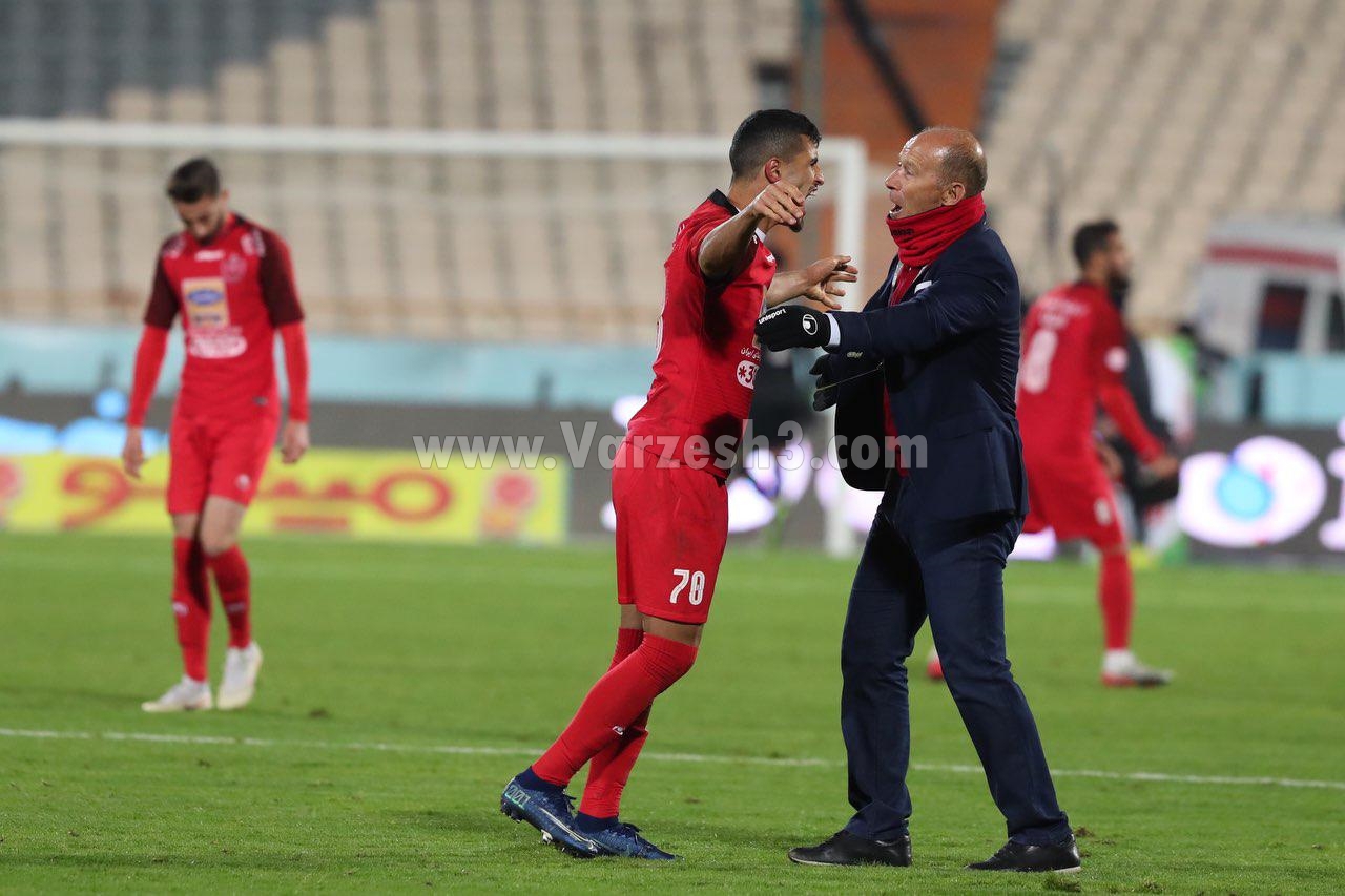 این دو همچنین یکدیگر را در آغوش گرفتند تا رابطه خوب و صمیمانه خود را نشان دهند. پس از آن سرمربی و بازیکن پرسپولیسی ها راهی رختکن شدند تا احتمالا ادامه شادی را آنجا انجام دهند.
