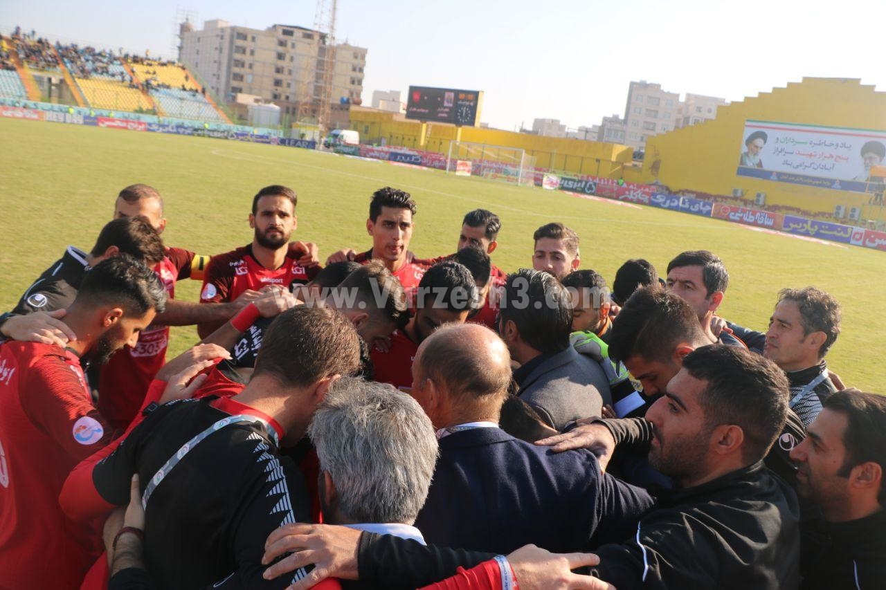 در این بین افشین پیروانی سرپرست کنونی و کاپیتان اسبق قرمزها برای دقایقی درمیان بازیکنان صحبت کرد.