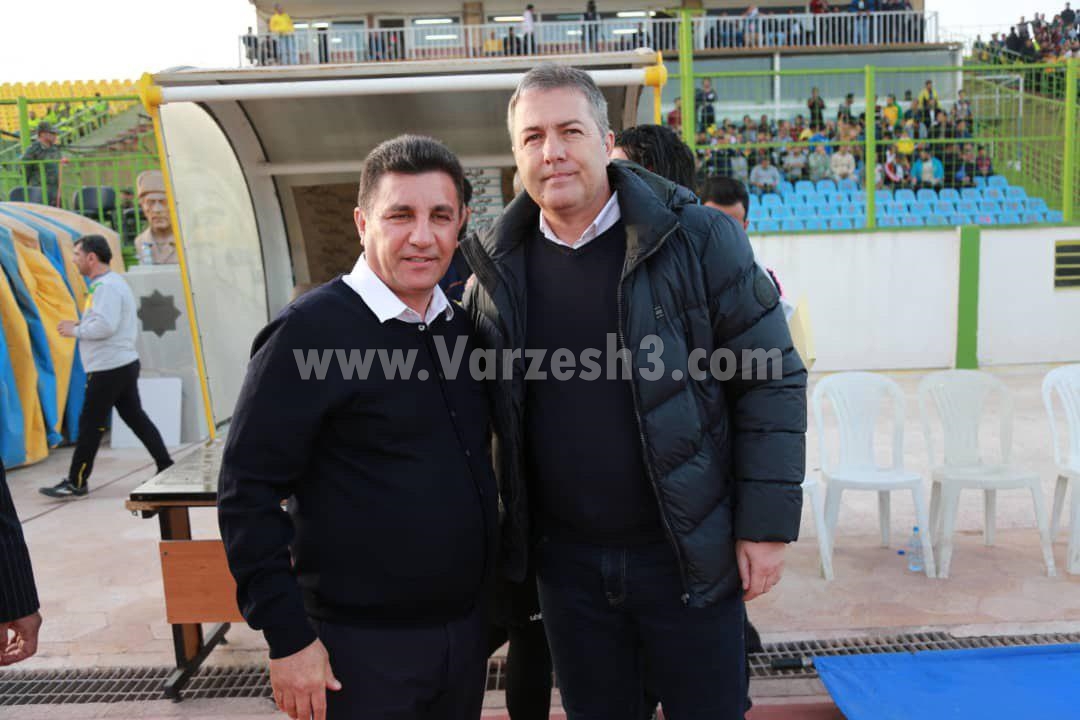 * محمد طیبی و رحیم زهیوی، دو بازیکن فوتبال خوزستان در جایگاه ویژه حضور دارند.