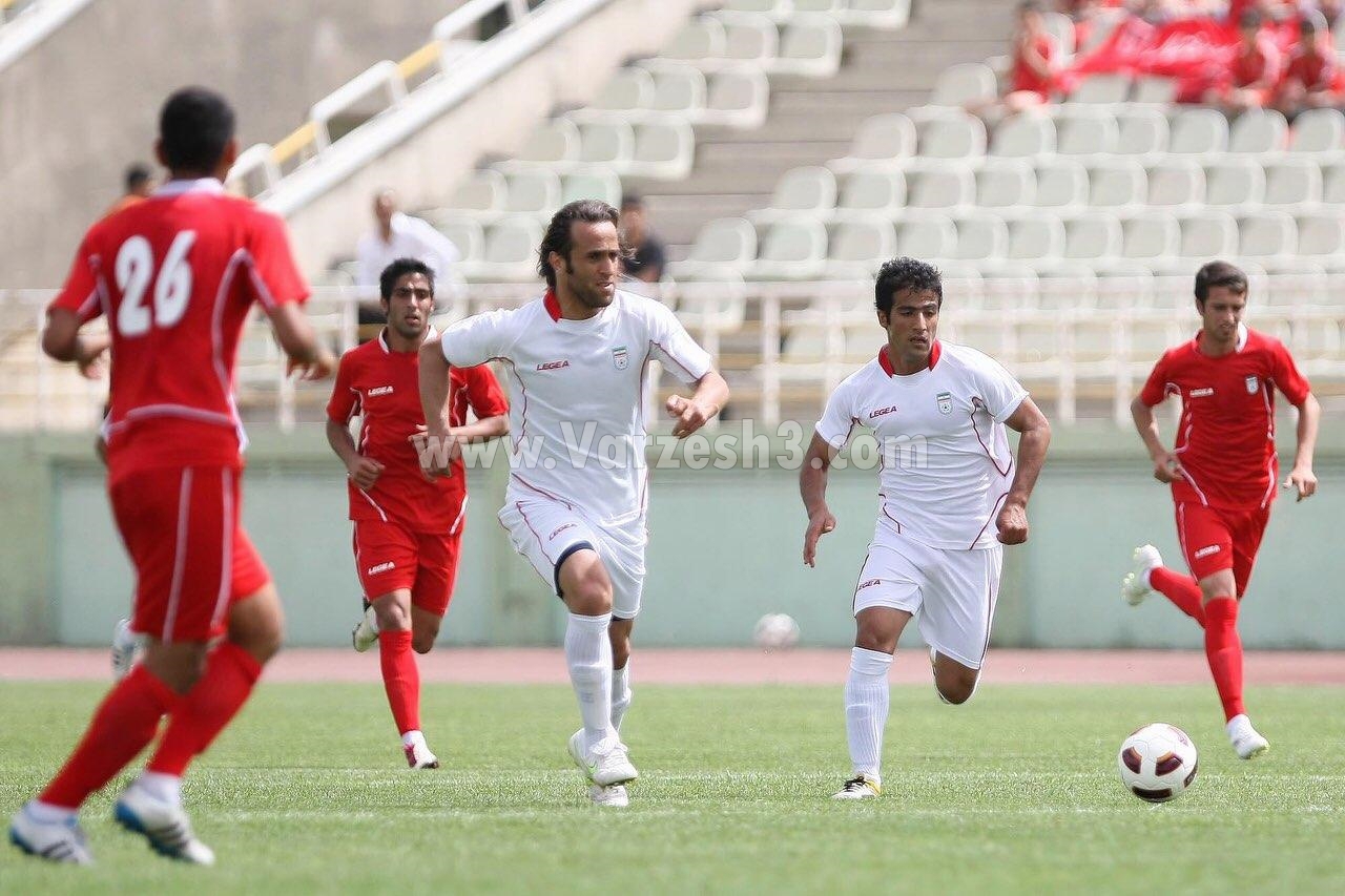 جدیترین محک شاگردان منصوریان که تمرینات زیادی هم پشت سر نگذاشته بودند، در ساعت ۰۹:۳۵ صبح روز ۱۶ خرداد ۹۰ در ورزشگاه دستگردی، مقابل تیم ملی بزرگسالان بود که ستاره و چهرههای شاخص و البته نفرات عجیبی هم داشت؛ مسابقهای که بخاطر در پیش بودن دیدار انتخابی المپیک برابر عراق، با جدیت خاصی از سوی دو تیم دنبال میشد و برخی تصاویر آن از دوربین امیرحسین خیرخواه در این مطلب آمده است.