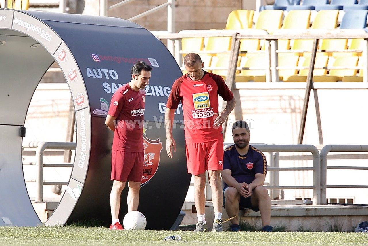 12:40 - تمرین پرسپولیس با فضایی که رقابت و البته شوخی حرف اول را میزند؛ این تصویر ساعتی بعد از طومار جنجالی منتشر شده که پرسپولیسی ها با رعایت فاصله فیزیکی در حال بازی «آقاوسط» هستند!