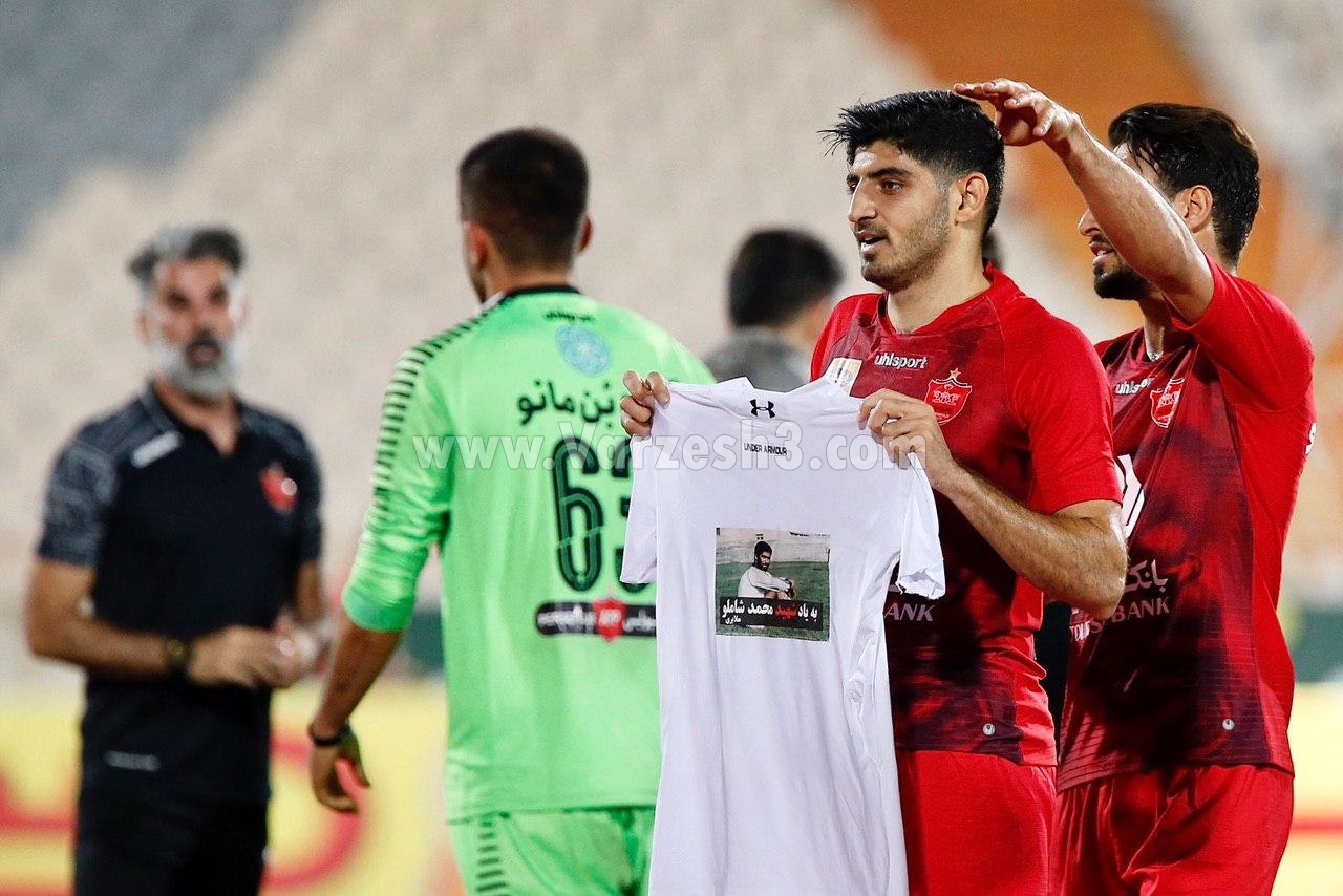 ترابی که معمولا شادی گل های جالبی در نظر دارد، اینبار هم با حضور در سمت نیمکت تیمش، تی شرتی که روی آن تمثال شهید محمد شاملو قرار داشت را رو به دوربین گرفت و اینچنین یاد این شهید را زنده نگه داشت و گلش را به خانواده او تقدیم کرد.