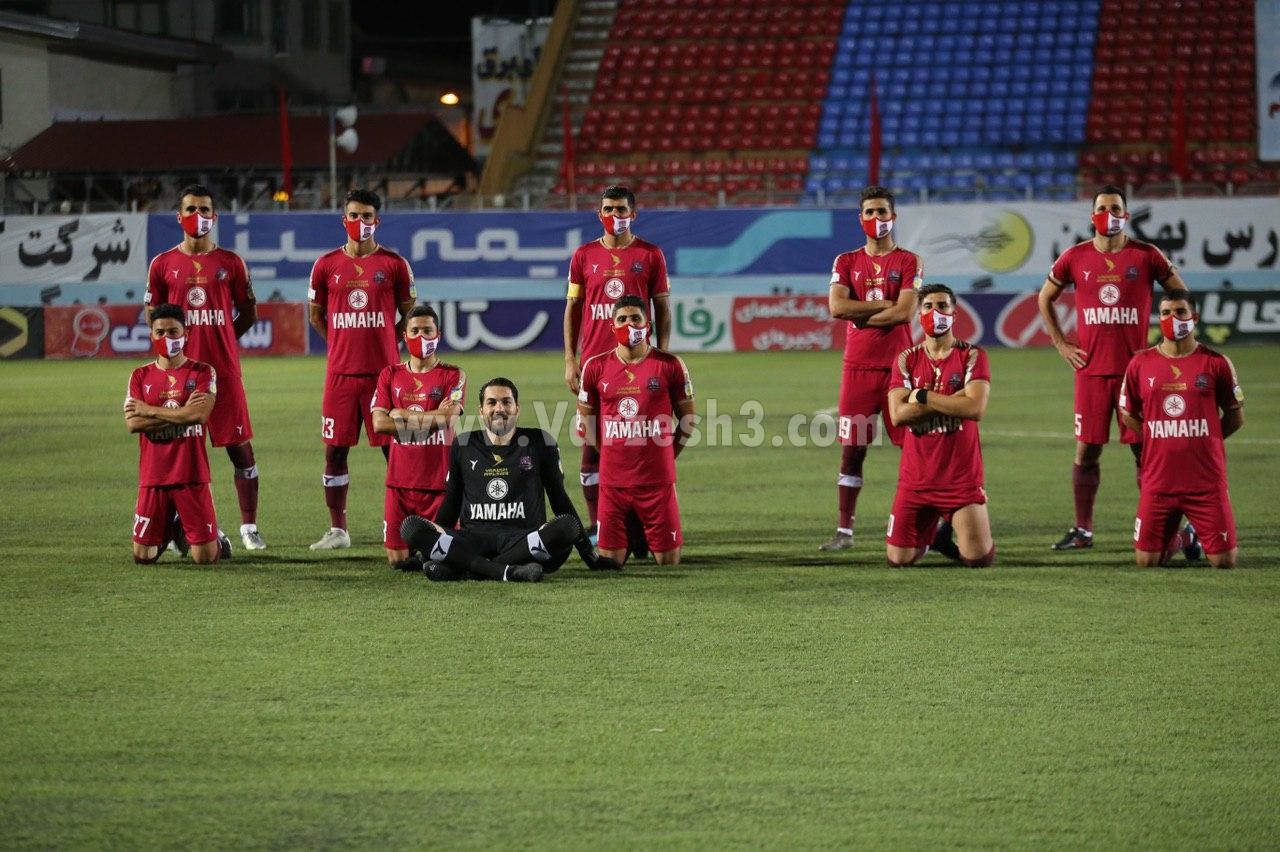 22:06-عکس تیمی بازیکنان ماشین سازی با فاصله اجتماعی؛ کاپیتان ماشینی ها عزیز معبودی است که خوشبختانه کرونا را شکست داده و امروز هم در ترکیب اصلی حضور دارد.