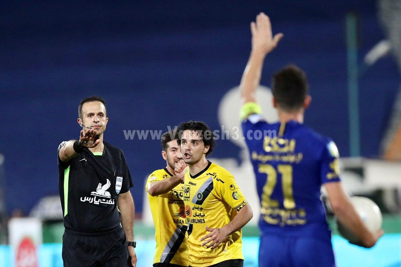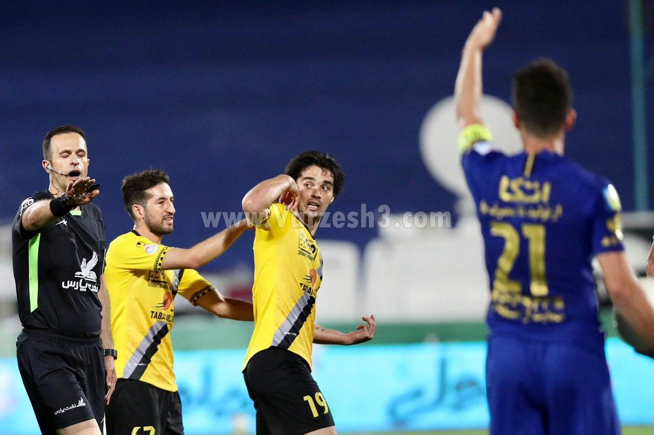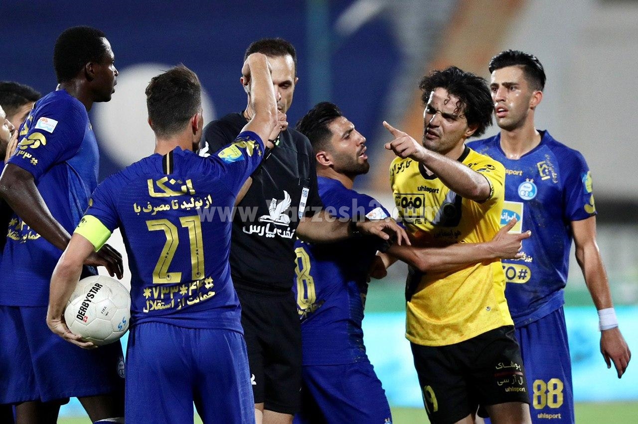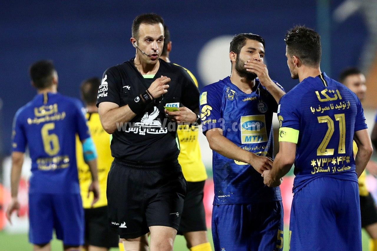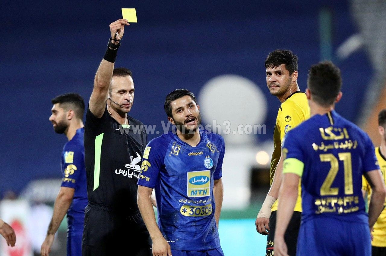 پای دیگر بازیکنان استقلال مثل عارف غلامی هم به این صحنه باز شد تا اینکه صبر داور به پایان رسید و به هر دو بازیکن کارت زرد نشان داد.
