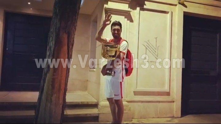 او سپس با جام و مدال قهرمانی به خانه رفت تا جشن کوچکی را با خانواده تازه تاسیسش برگزار کند درحالیکه در طول نود دقیقه لحظات دشواری را پشتسر گذاشته بود.. او که آخرین صحنه اکشن بازی مقابل ذوب را با یک قیچی و پرش بلند ثبت کرد در قسمتی از بازی با مهاجم خارجی ذوب طوری درگیر شد که حتی ممکن بود این حرکت به جاهای باریک بکشد؛ اتفاقی به نشانه دشواری همه بازیها که طبعا دریافت جام را شیرین تر میکند و علت حرکات بعد از قهرمانی این بازیکن پرسپولیس هم جز این نیست.