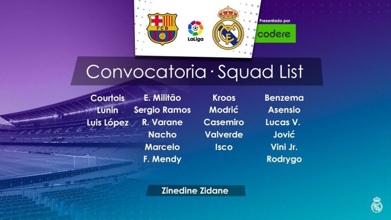 اما ماریانو دیاز، ماترتین اودگارد، ادن هازارد، دنی کارواخال و آلوارو اودریوزولا، همگی به علت مصدمیت قادر به همراهی رئال مادرید در این دیدار حساس نخواهند بود. ادن هازارد در دومین فصل حضور در مادرید نیز شانس حضور در ال کلاسیکو را پیدا نکرده و مشخص نیست این خرید گرانقیمت چه زمان برای رئال مادرید کاربرد خواهد داشت.