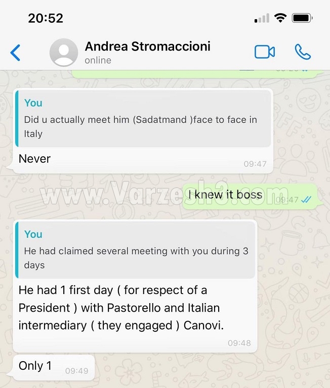 میثاقی: شما عکسی یا مدرکی از جلسهتان با استراماچونی و یا وکیل ایشان دارید؟ شما میگویید رفتهاید و مذاکره انجام دادهاید اما هیچ عکسی بیرون نیامده است.