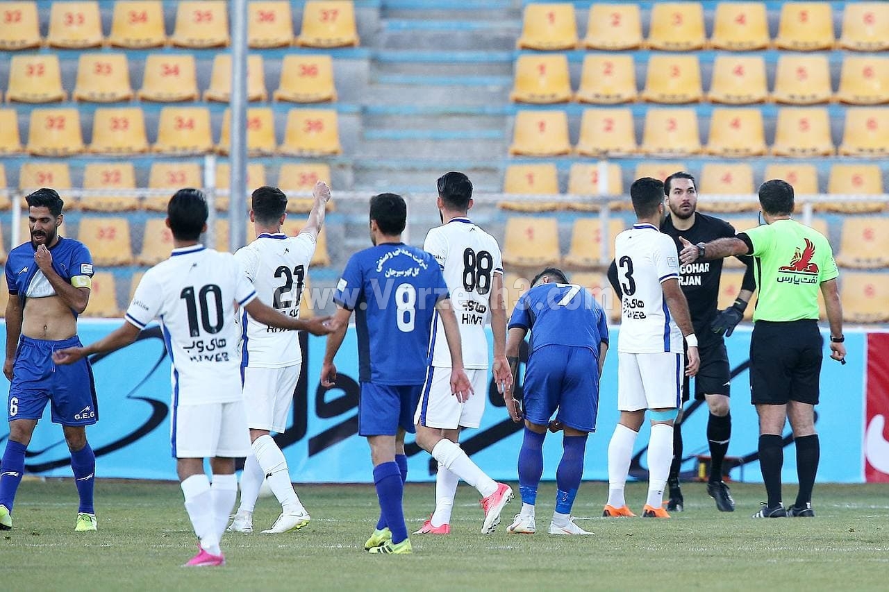 در این لحظه باز هم بیم آن می رفت که اکبریان حقیقی را بابت حرفهایی که ممکن بود تحریک آمیز باشد، از زمین مسابقه اخراج کند اما دخالت بازیکنان گل گهر و ساکت کردن حقیقی همه چیز را تمام کرد تا این دقایق پر تب و تاب و بحرانی، به پایان برسد. لحظاتی که می توانست شکست نیمه اول گل گهر در خانه را سنگین تر کند.