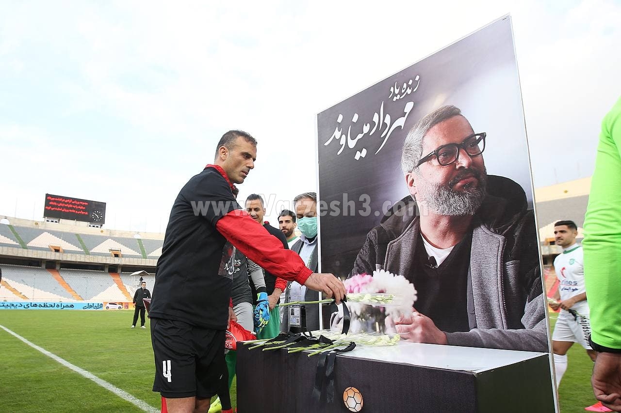 پیش از شروع بازی نیز بازیکنان با پیراهنی که روی آن عکس مرحوم مهرداد میناوند نقش بسته بود و با پارچه نوشتهای در فراغ این پیشکسوت در زمین حاضر شده بودند. در ادامه نیز اهدای گل به محل یادبود مهرداد میناوند از دیگر اقدام بازیکنان و اعضای پرسپولیس پیش از سوت شروع بازی بود.