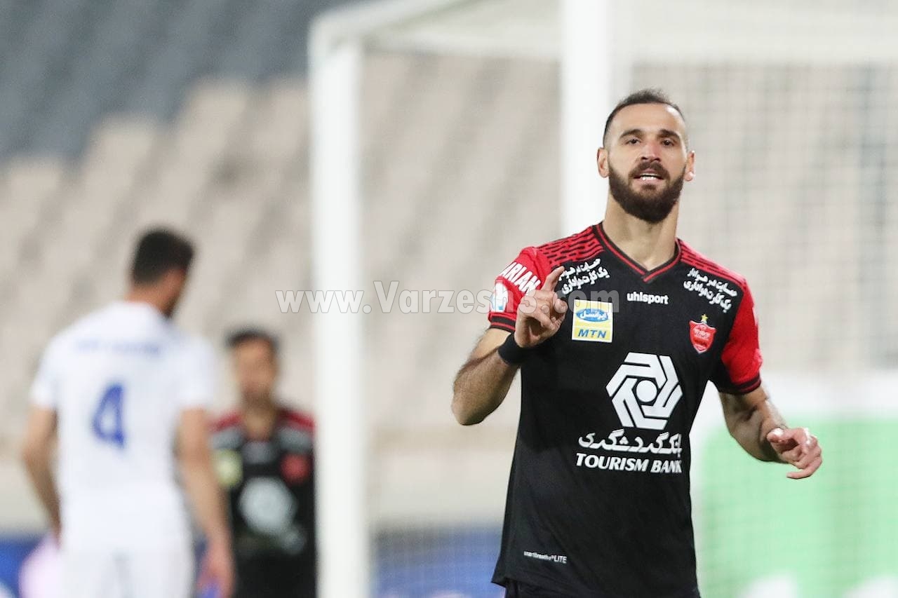 دقیقه 31: ضربه سر آرش قادری روی پرتاب اوت بلند نادر محمدی از روی دروازه پرسپولیس رد شد.