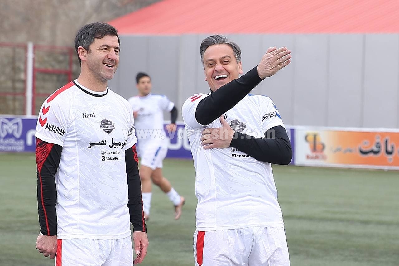 شاهرودی که همچنان جزو خوشتیپ ترین های فوتبال ایران است، در حاشیه بازی با کریم باقری این عکس یادگاری را گرفت تا قابی از دو چهره محبوب نسل دهه ۱۳۷۰ فوتبال ایران را به یادگار بگذارد.