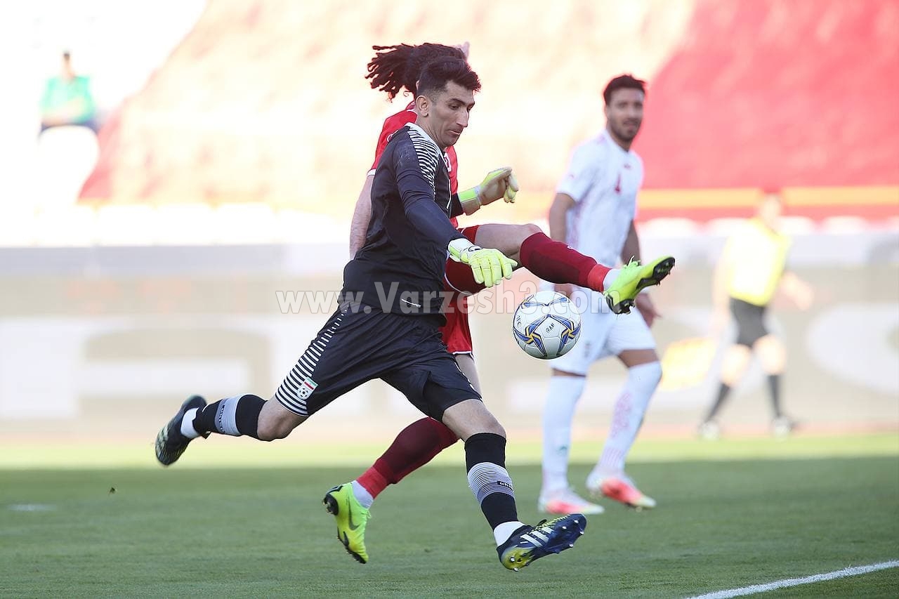 لحظه ای که علیرضا بیرانوند باوجود مزاحمت توپ را برای مهاجمان تیم ملی فرستاد.