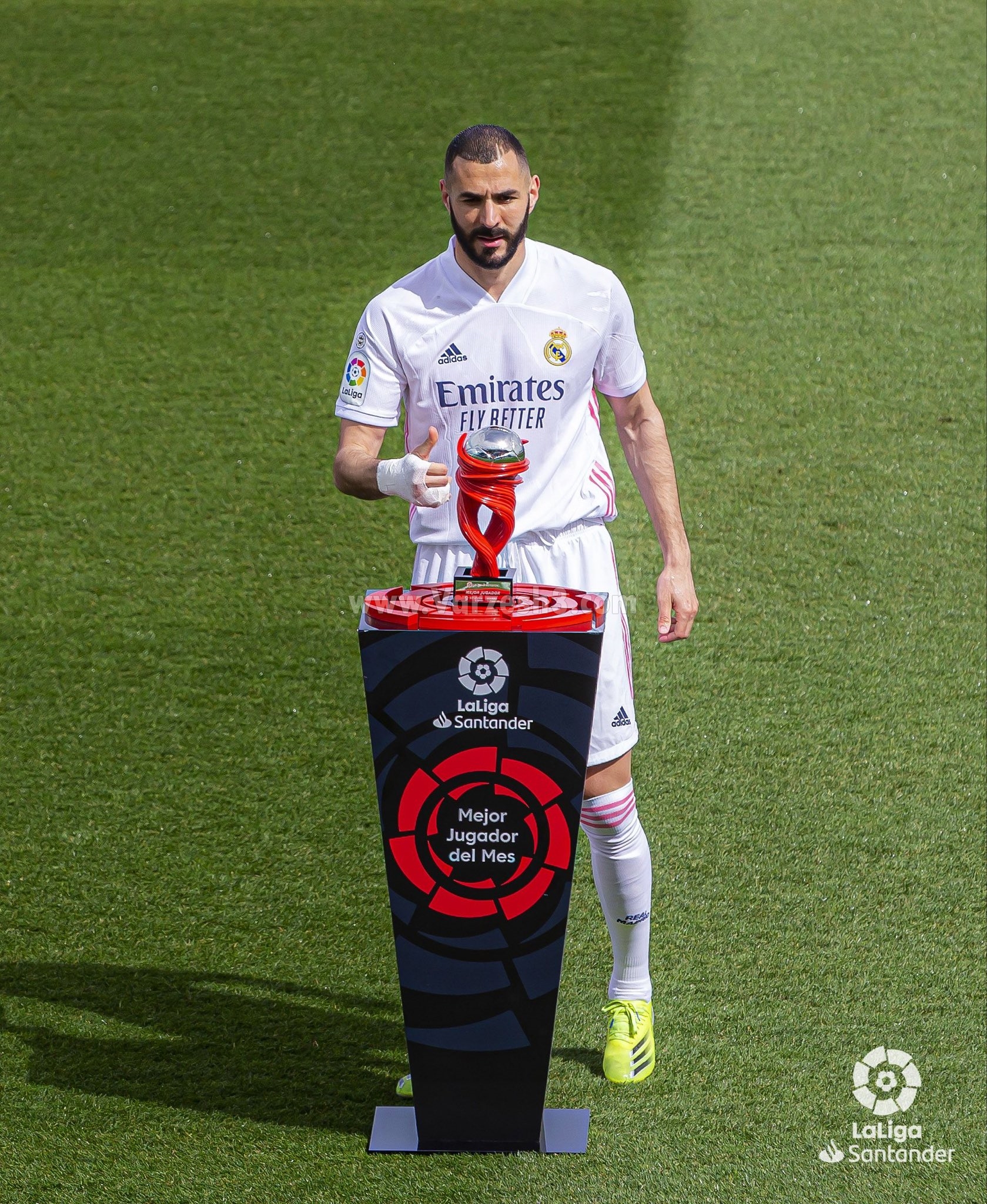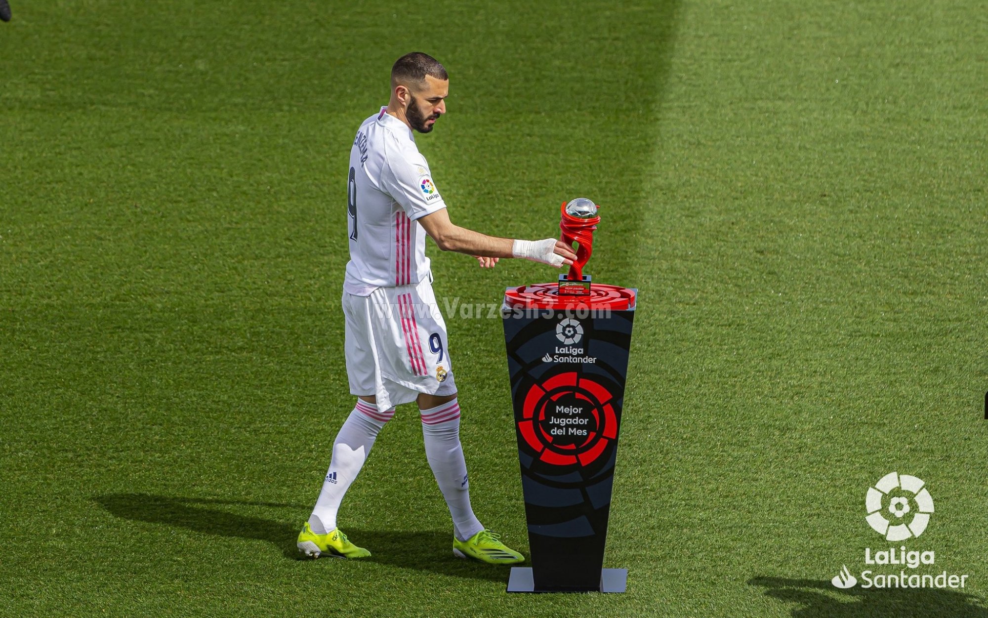 عملکرد ستاره فرانسوی رئال مادرید طی یک ماه اخیر به قدری خوب بوده که او توانست به عنوان بهترین بازیکن ماه مارس لالیگا انتخاب شود. در همین راستا کریم زمان امروز و پیش از آغاز بازی رئال مادرید برابر ایبار به شکل رسمی جایزه خود را دریافت کرد.