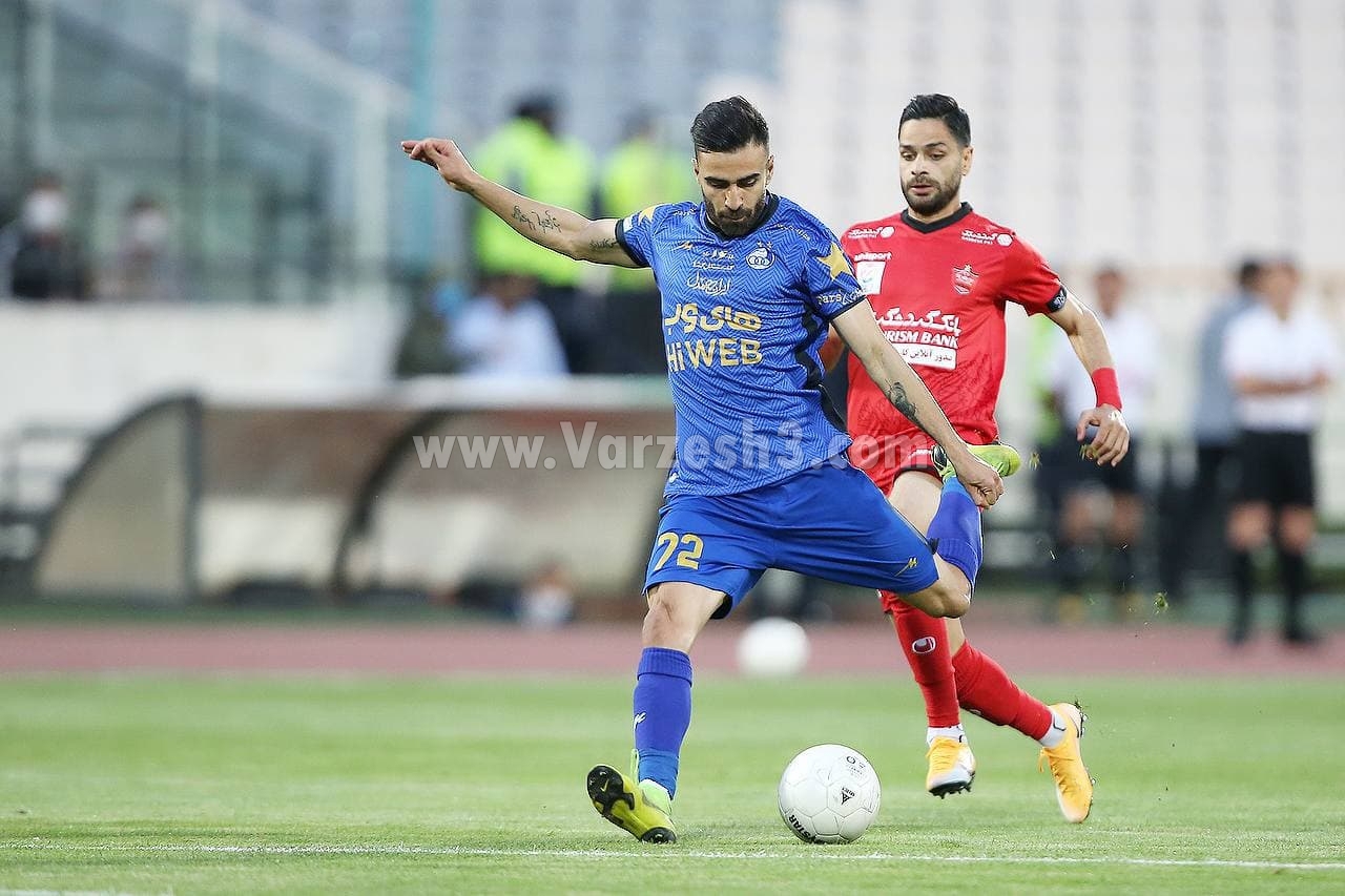 مهاجم آبی پوشان پس از اینکه چندمتری پا به توپ به سمت دروازه پرسپولیس پیش رفت و مدافعین پرسپولیس را جا گذاشت، با ضربه ای محکم به سمت دروازه، حامد لک را مجبور به واکنش کرد و توپ برگشتی به مهدی قایدی رسید و این بازیکن در شرایط تک به تک به لک قرار گرفت که توپش را به بیرون زد.