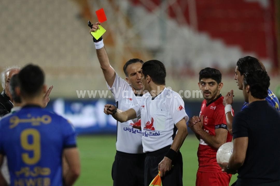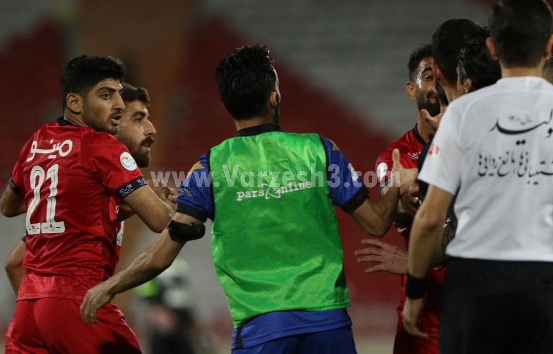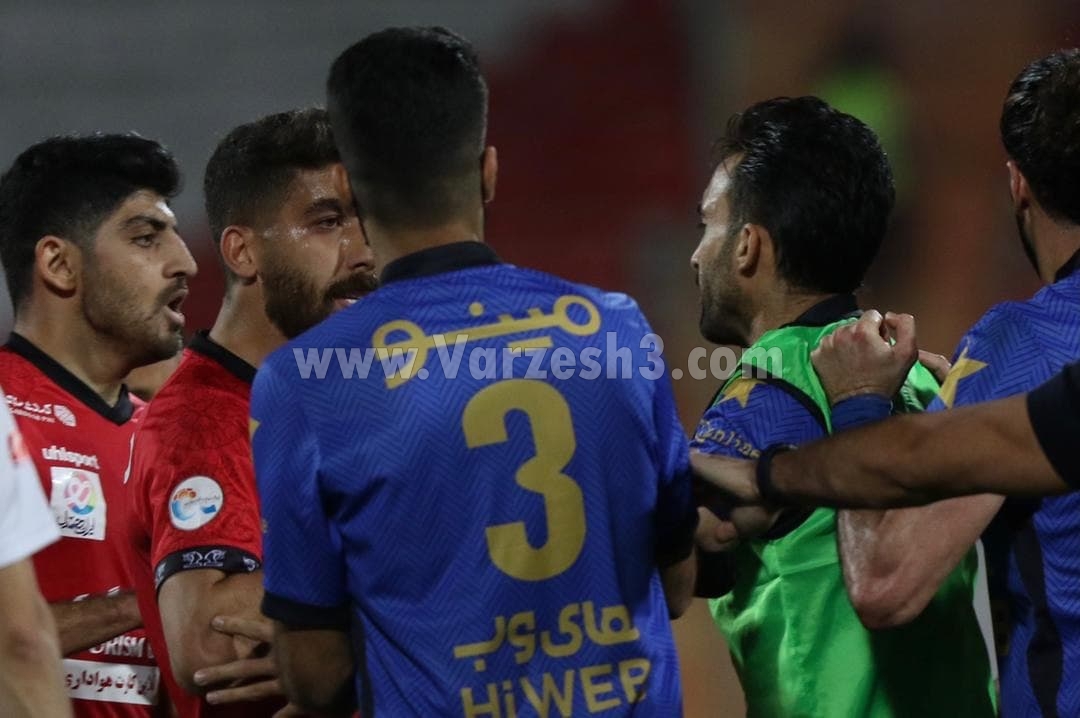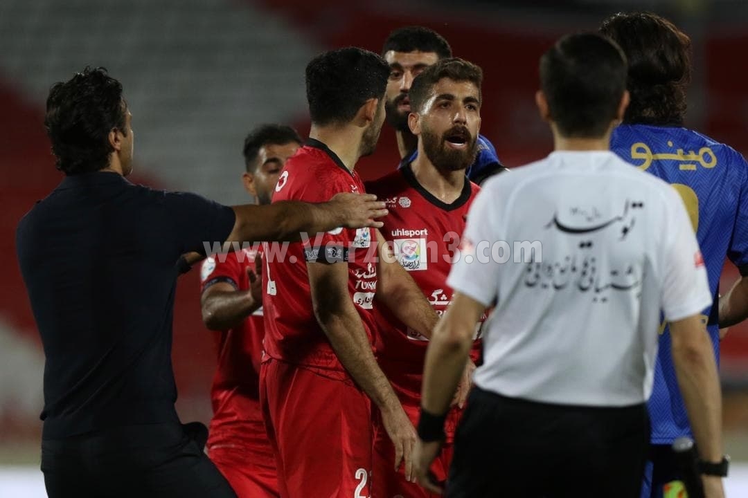 سیامک نعمتی بعد از تشدید درد در ناحیه کتف که از دیدار برابر سپاهان برای او به جا مانده بود، جای خود را به فرشاد فرجی داد. این در حالی بود که به نظر میرسید یحیی گل محمدی در این بازی پرتنش و حساس از مهدی شیری به عنوان مدافع راست باتجربه و تخصصی خود سود ببرد. با این حال فرجی بعد از درگیری لفظی که با خطای محمد نادری استارت خورده بود، با حضور در صحنه و درگیری با بهزاد غلامپور کارت قرمز را مقابل چشمان خود دید تا پرسپولیس در ثانیه های پایانی با یک یار کمتر به کار ادامه دهد.