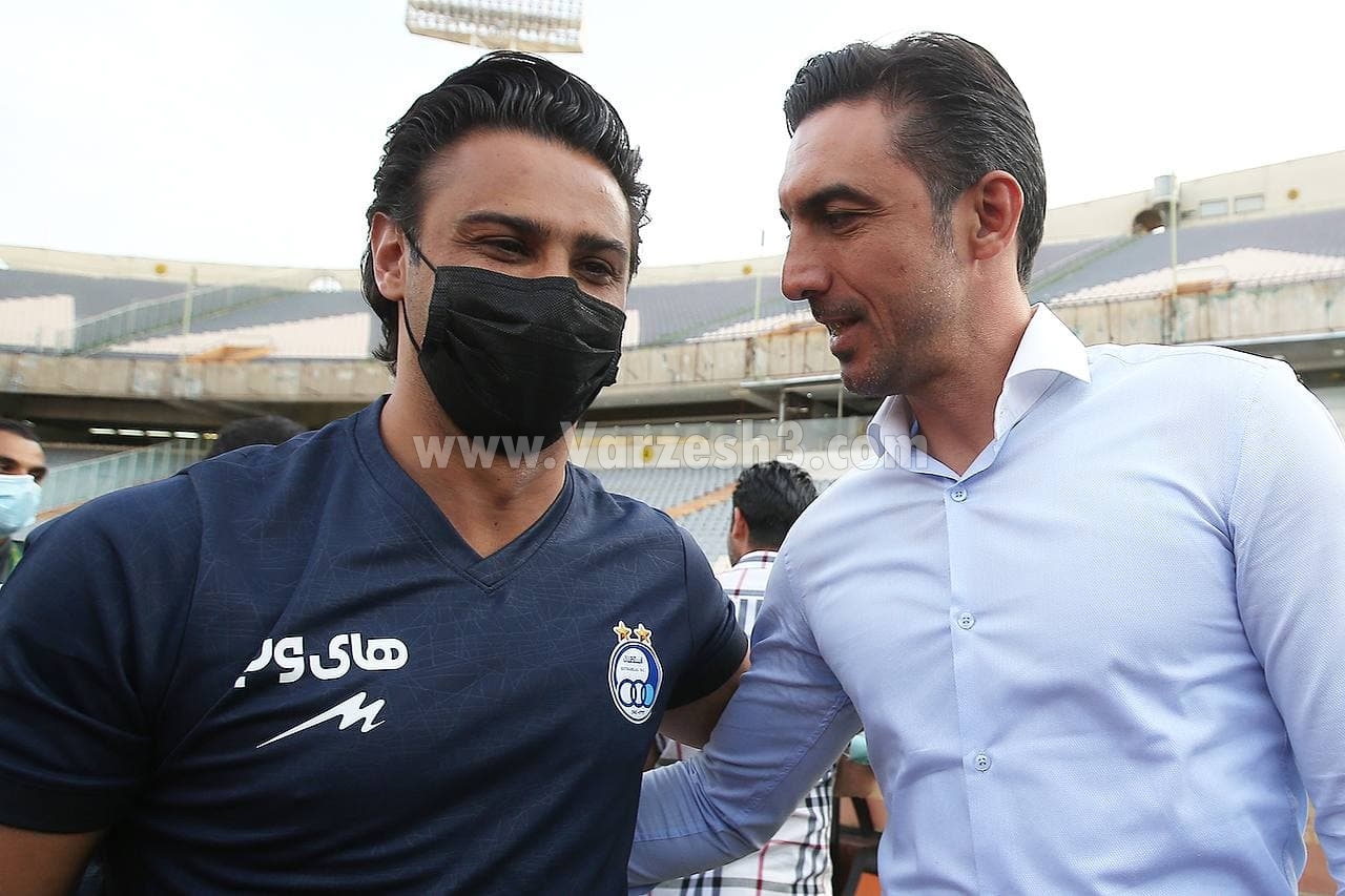 مجیدی و رحمتی اگرچه در دوران بازی اختلاف نظراتی با هم داشتند اما رفاقت آنها همچنان پابرجا است و قبل از شروع بازی امروز نیز این دو پیشکسوت ارزنده و محبوب آبی ها تقابل جالبی داشتند.