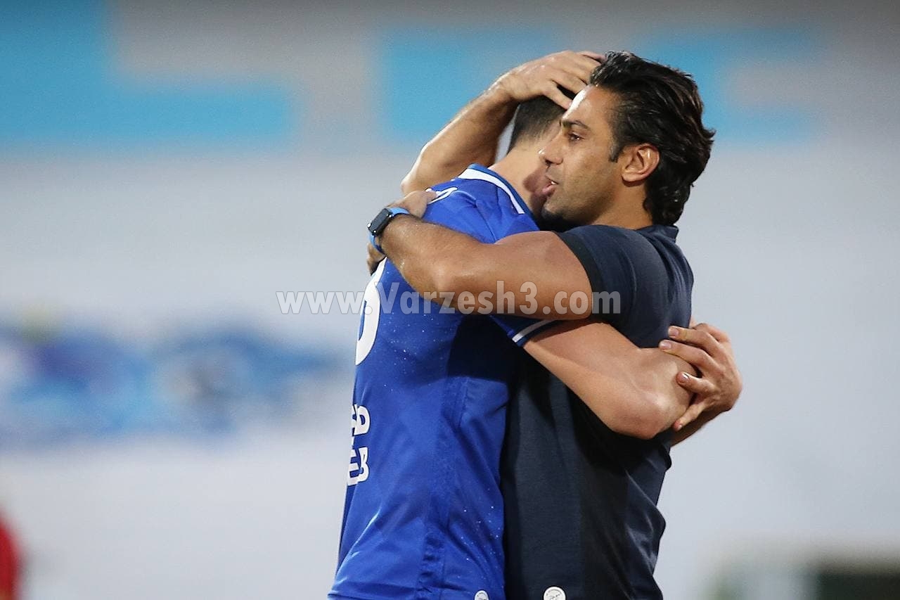 رمضانی در ادامه با دوندگی بالا خودش را به کنار زمین رساند تا ضمن در آغوش گرفتن فرهاد مجیدی و تقدیم این گل به سرمربی استقلال از حمایت ها و اعتماد او تشکر کند.