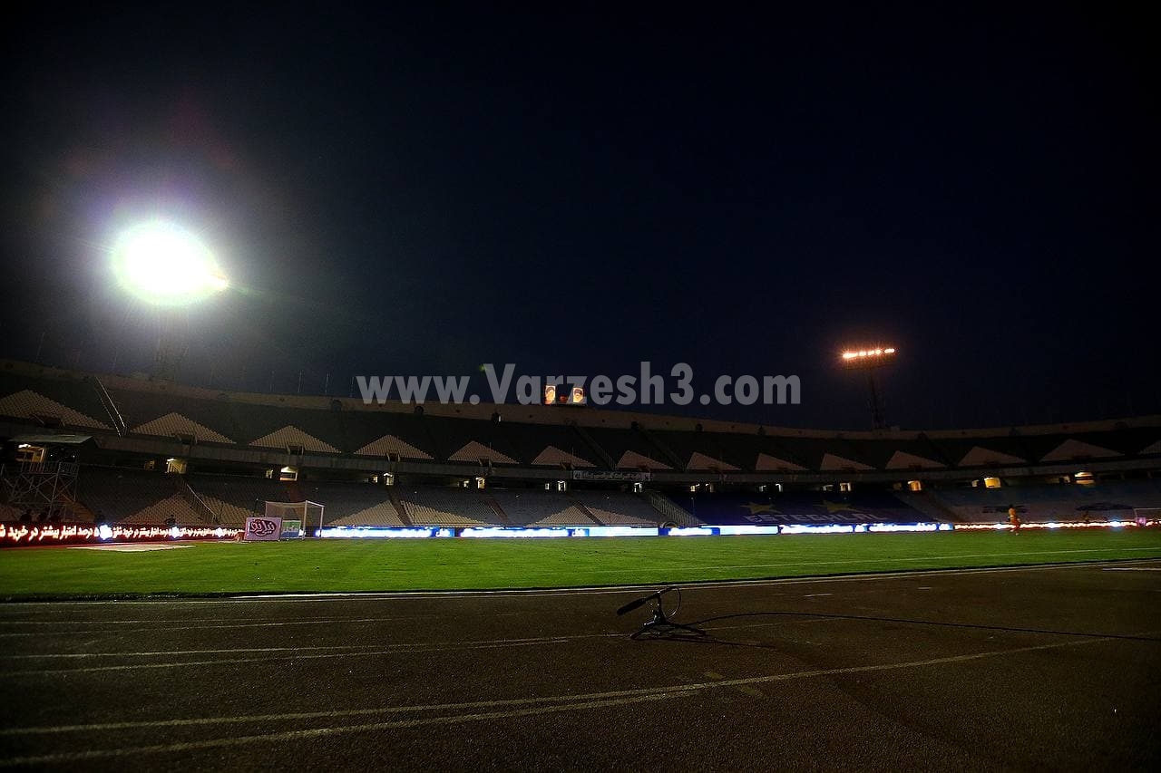 جالب اینکه تابلوهای تبلیغاتی دور زمین و برخی دیگر از نقاط ورزشگاه آزادی برق داشت.