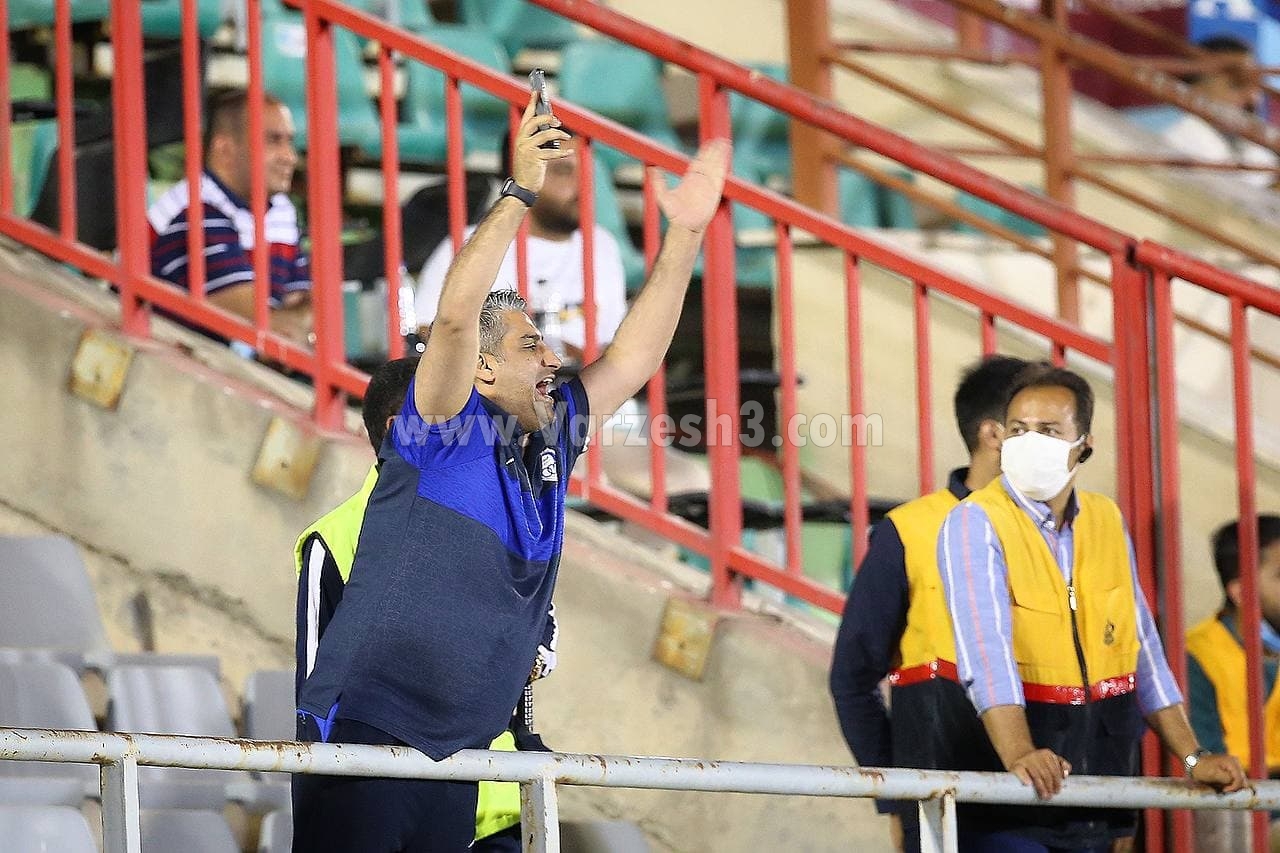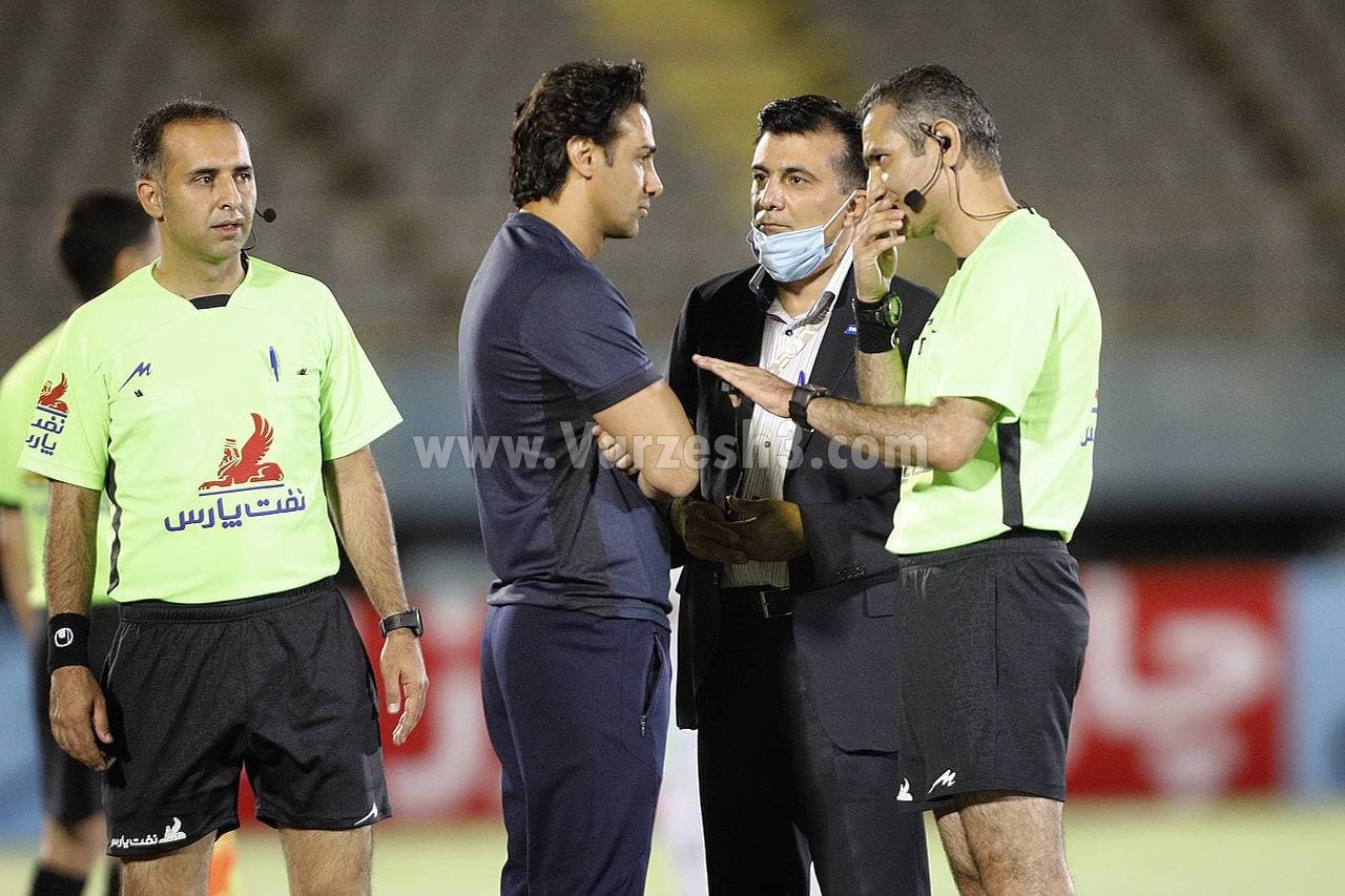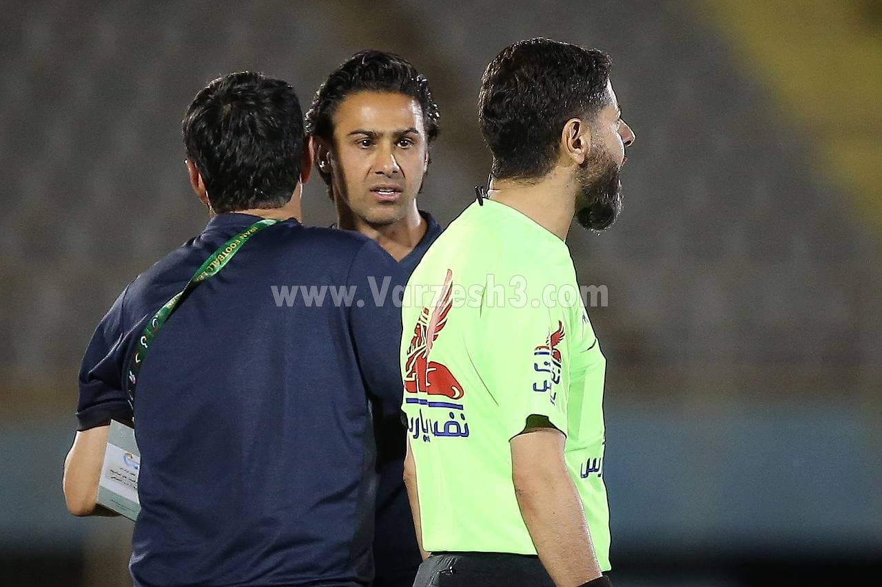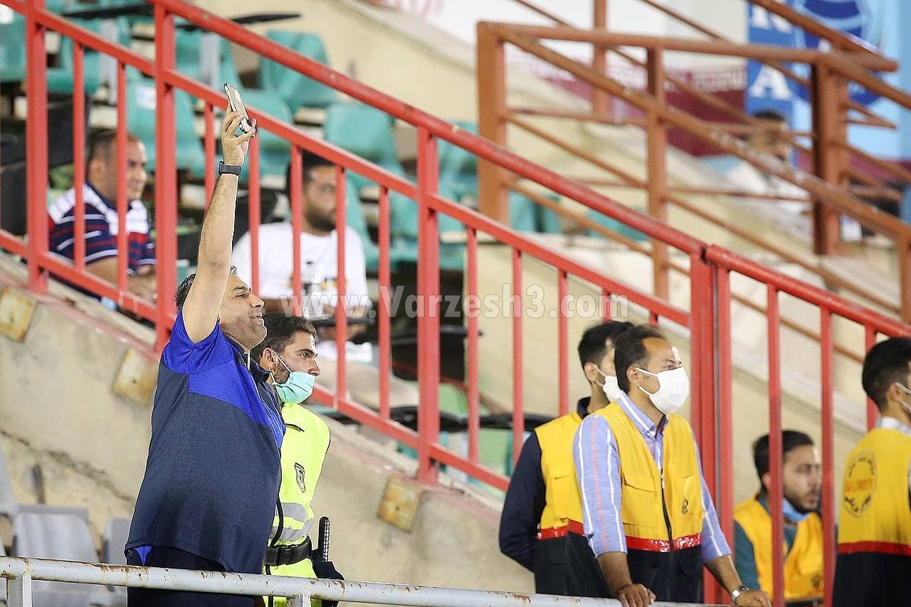 بعد از اینکه فرهاد مجیدی با کارت زرد داور مواجه شد، اعتراض خود را ادامه داد. او در حالی که همچنان گوشی را به دست داشت و با اشاره به فیلم صحنه آفساید از پایمال شدن حق تیمش شاکی بود، با اقدام جالب ناظر بازی مواجه شد؛ رفعتی که مشخص بود از طولانی شدن اعتراض مجیدی به شدت عاصی شده بود، گوشی همراه را از دست او گرفته و در جیب کتش گذاشت! البته همچنان سرمربی آبی ها در حال اعتراض کردن بود!