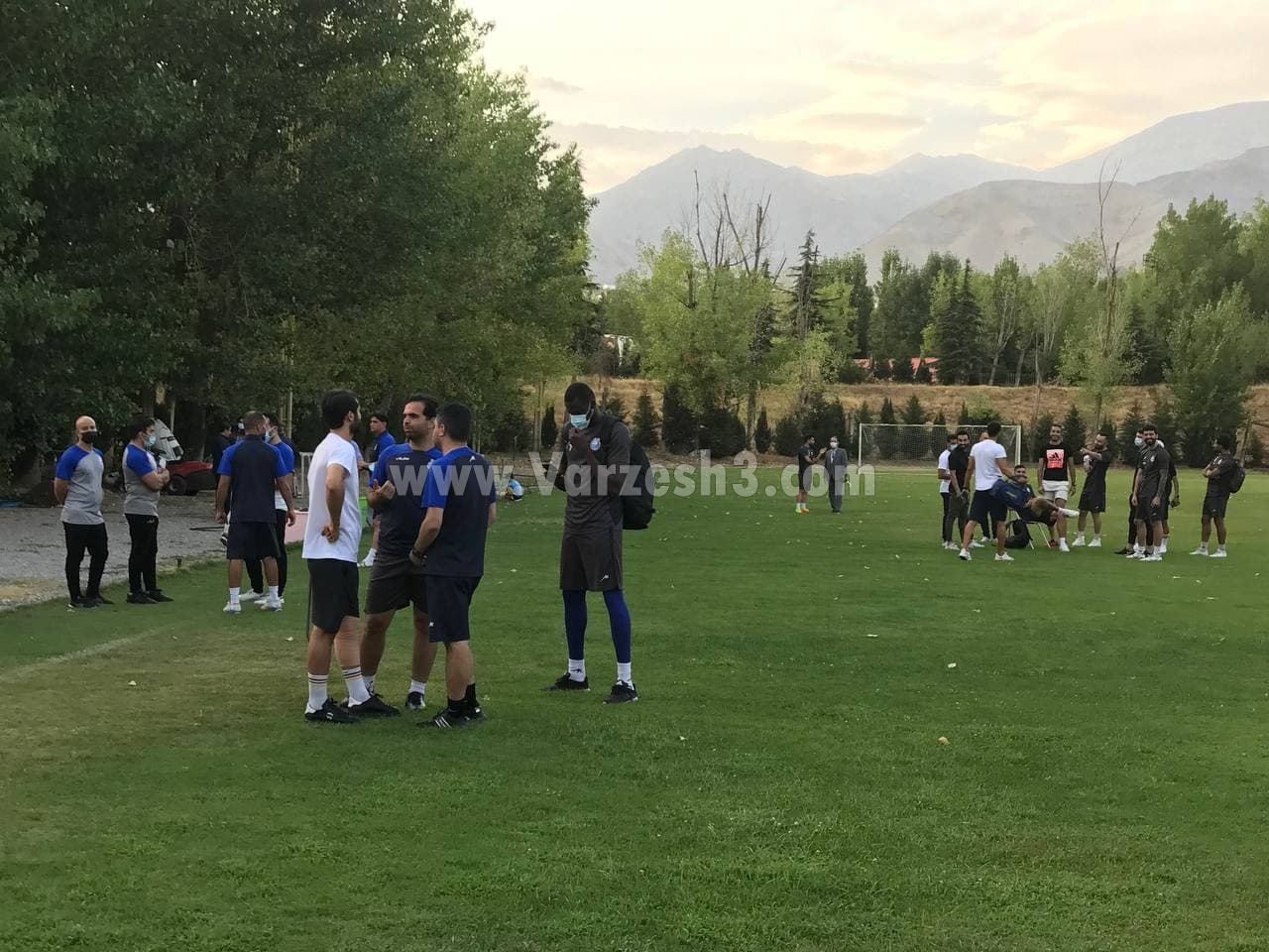 بازیکنان استقلال بدون اینکه تمرینی انجام دهند، وسط زمین ایستاده و در حال صحبت و گفتگو هستند. هواداران نیز همچنان در حال سر دادن شعار علیه احمد مددی هستند.