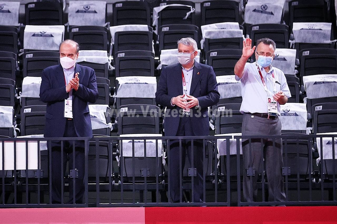 مسعود سلطانیفر وزیر ورزش و جوانان با همراهی سیدرضا صالحی امیری رئیس کمیته ملی المپیک و محمدرضا داورزنی رئیس فدراسیون والیبال از نزدیک مسابقه شاگردان آلکنو را تماشا کردند و نظارهگر پیروزی ملیپوشان والیبال ایران بودند و در پایان مسابقه نیز بابت نمایش خوبی تیم ملی والیبال ایران، به ملیپوشان خسته نباشید و خداقوت گفتند.