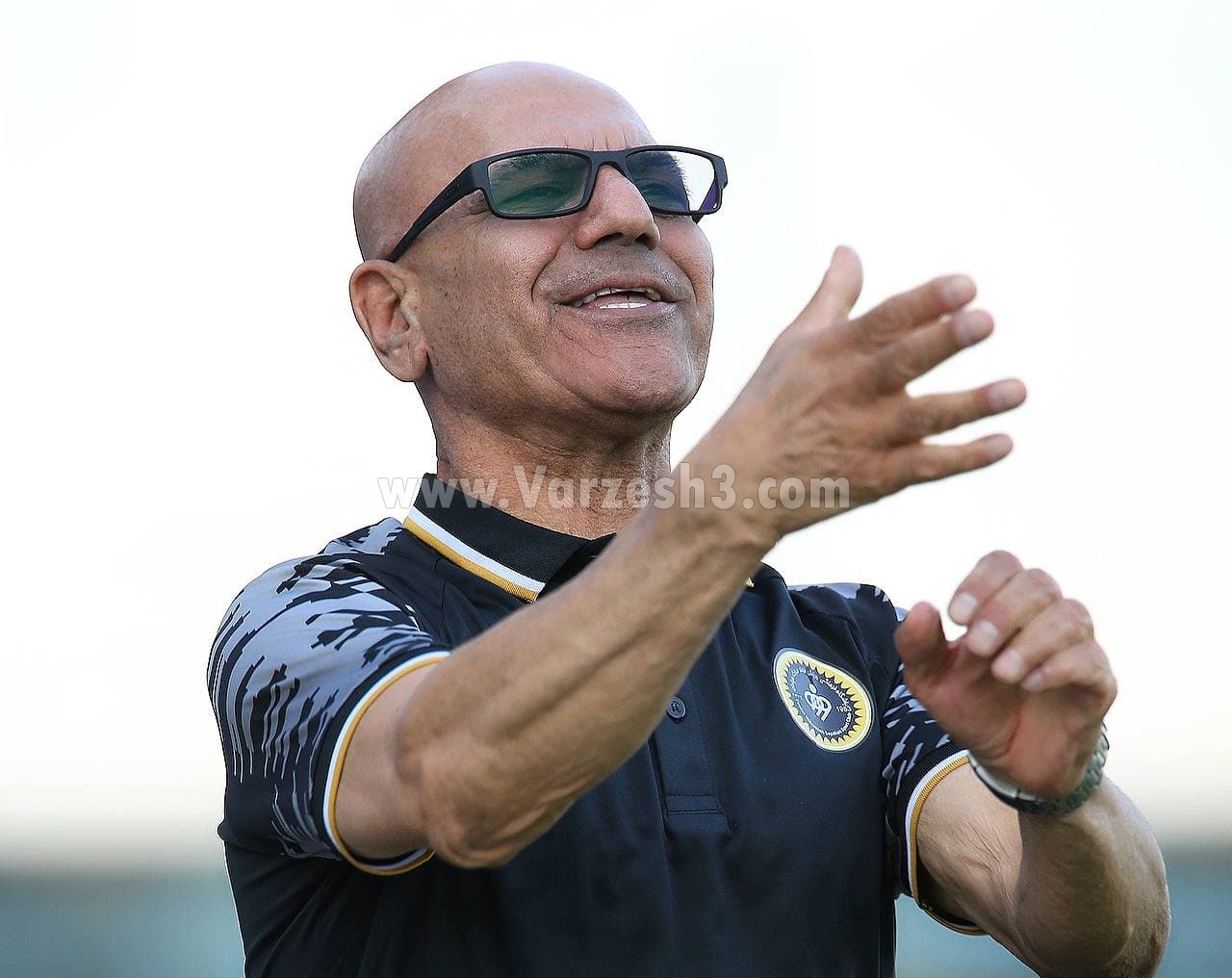 این هم صحنهای از اعتراض شدید مرزبان به داور مسابقه که در همان دقایق ابتدایی سبب جلب توجه حاضران در کمپ الیاف به مربی سپاهان و نیمکت این تیم شد.