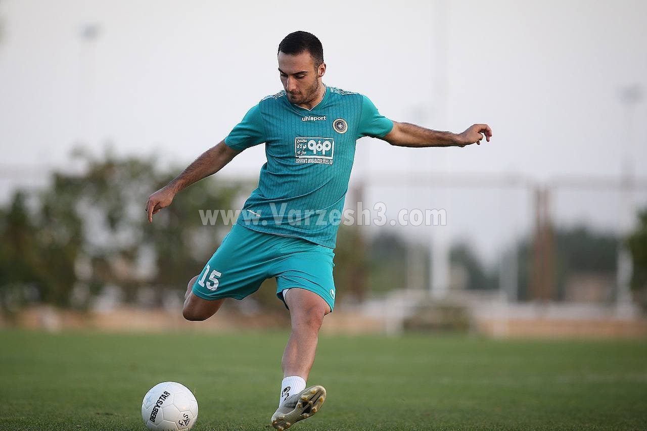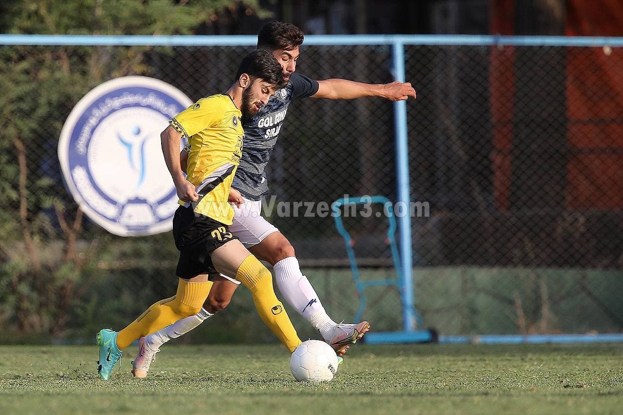 امیرمحمد محکمکار در دیدار دوستانه مقابل گلگهر و در یکی از دوئلهای نفر به نفر بازی مقابل رضا شکاری.