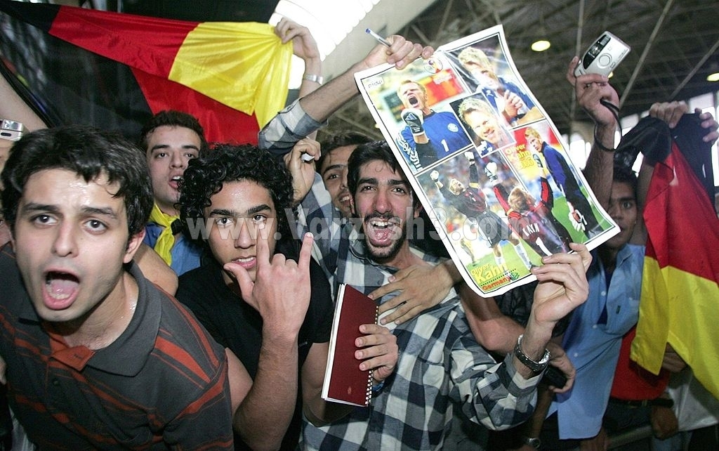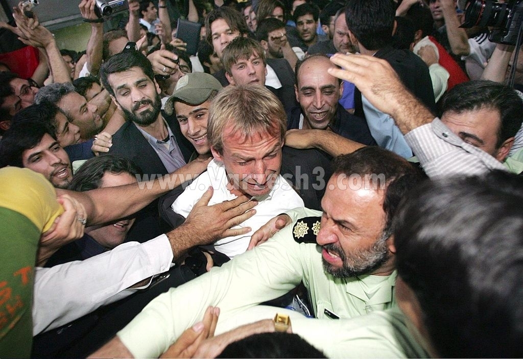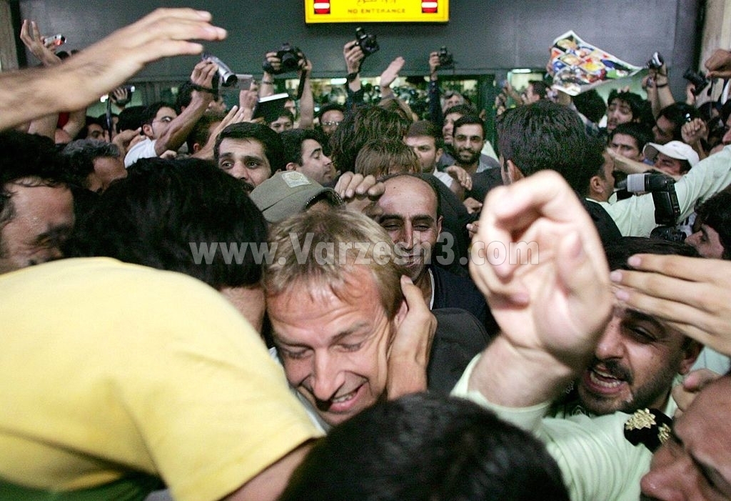 اوج هنرنمایی اما پیش از آغاز مسابقه و در فرودگاه مهرآباد رقم خورد. هواداران زیادی از سراسر کشور برای استقبال از ستاره های آلمانی راهی فرودگاه شده و شرایط را طوری رقم زدند که چنین تصاویر عجیبی از یورگن کلینزمن و دیگر اعضای کاروان تیم ملی آلمان رقم خورده و سرمربی ژرمن ها در بین خیل جمعیت ساندویچ شود. در نهایت در تصمیمی منحصر به فرد، تمام اعضای کاروان آلمان دوباره به داخل گیت بازگشته و از در دیگری فرودگاه را به مقصد هتل ترک کردند.