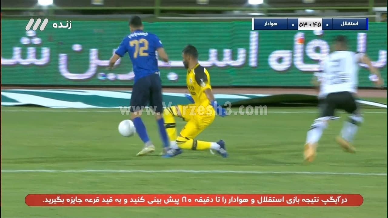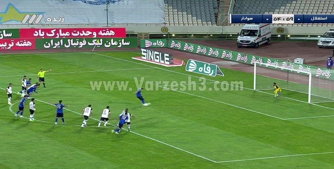 در نهایت وریا غفوری دومین ضربه را درست همان جای قبلی زد و اینبار حقشناس دستش را خواند و توپ را مهار کرد تا استقلال به گل نرسد.