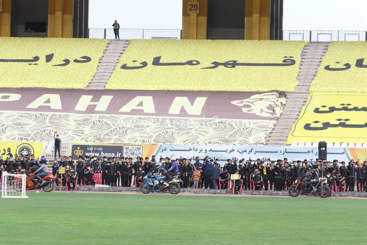 همچنین میتوان به رژه موتورهای سنگین و حضور اسبها در پیست تارتان ورزشگاه نقش جهان اشاره کرد که برای سپاهانیها تداعی گر روز خاطره انگیز کسب اولین قهرمانی در تاریخ لیگ برتر با فرهاد کاظمی بود.
