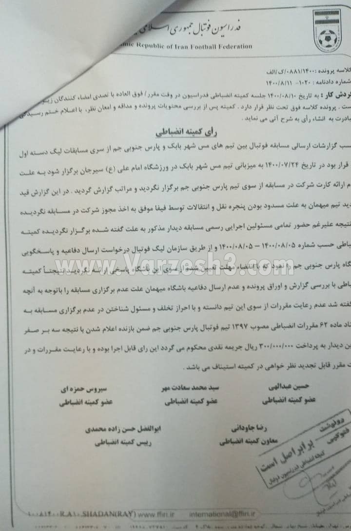 به گزارش "ورزش سه"، پارس جنوبی جم به دلیل مسدود بودن پنجره نقل و انتقالاتی و عدم صدور کارت بازیکنان این تیم، در هفته اول لیگ آزادگان موفق به حضور برابر تیم مس شهربابک نشد.