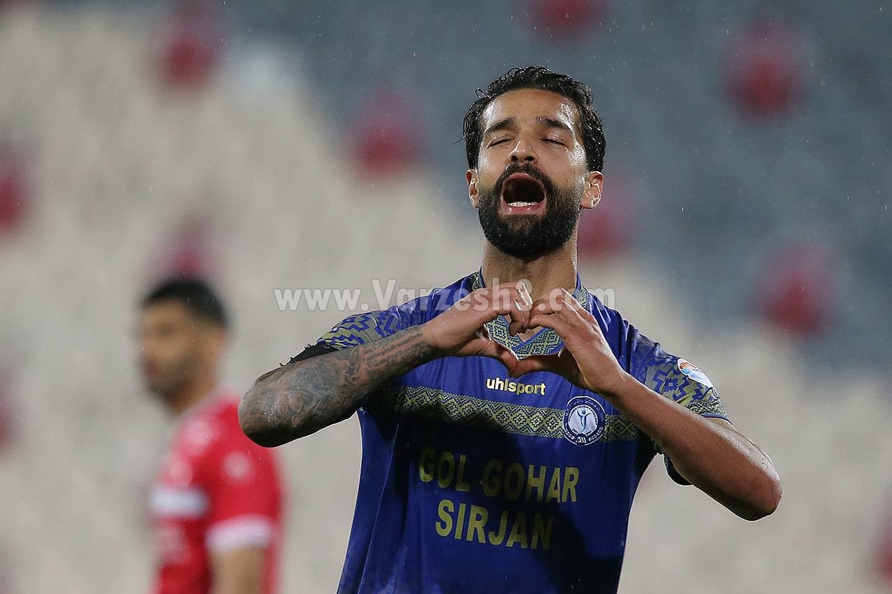 مدافع سابق استقلال پس از گلزنی به پرسپولیس، به سرعت خود را مقابل لنز دوربین عکاسان رساند و با دستان خود شکل قلب را ساخت و مقابل لنز دوربینها گرفت تا اینچنین شادی پس از گل خود را انجام داده باشد.