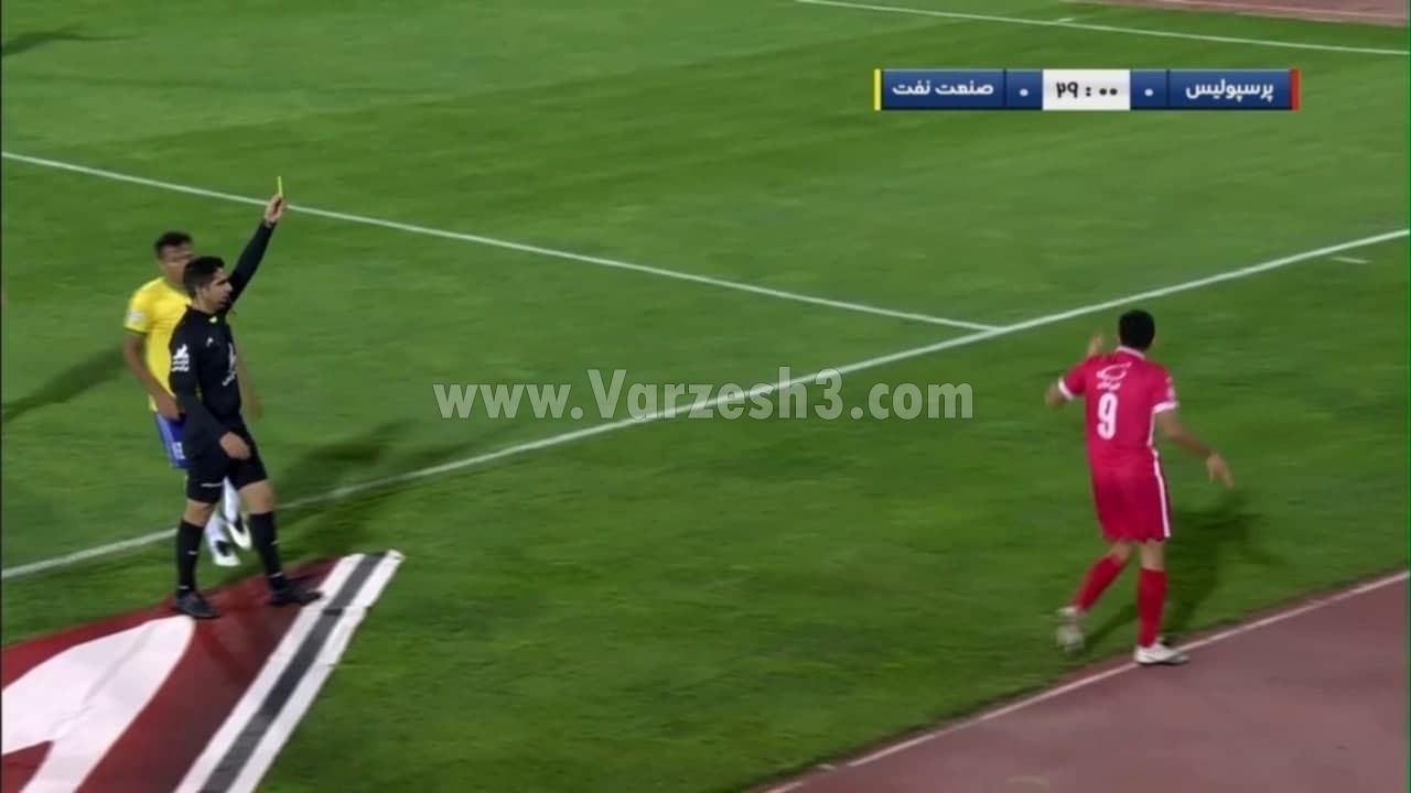 اما یک صحنه مهم و بحث برانگیز در نیمه اول دیدار برابر پرسپولیس و صنعت نفت آبادان رخ داد؛ جایی که در دقیقه 30 مسابقه مهدی ترابی بعد از برخورد با محمد طیبی روی زمین افتاد. با این حال نه تنها اصغر مومنی، داور مسابقه، هیچ اعتقادی به خطا نداشت بلکه به خاطر بزرگنمایی یک کارت زرد هم به ترابی نشان داد؛ موضوعی که با اعتراض شدید این بازیکن همراه شد.