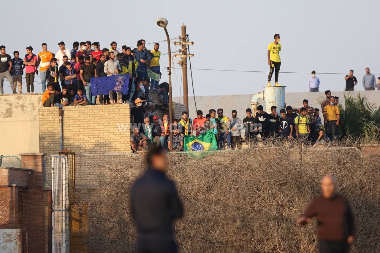 در بازی امروز دو تیم نفت و استقلال در استادیوم تختی آبادان اما هواداران فوتبالی که عمدتا از هواداران طلاییپوشان محسوب میشوند با پیراهن این تیم و پرچم برزیل به شکلی جالب اما شاید خطرناک به دنبال تماشای بازی هستند. حضور متراکم در کنار هم و از روی پشت بام ساختمانهای مشرف به استادیوم و سکوهای بلند اطراف این استادیوم یکی از جاذبههایی بوده که توجه عکاسان این دیدار را نیز به خود جلب کرده است.