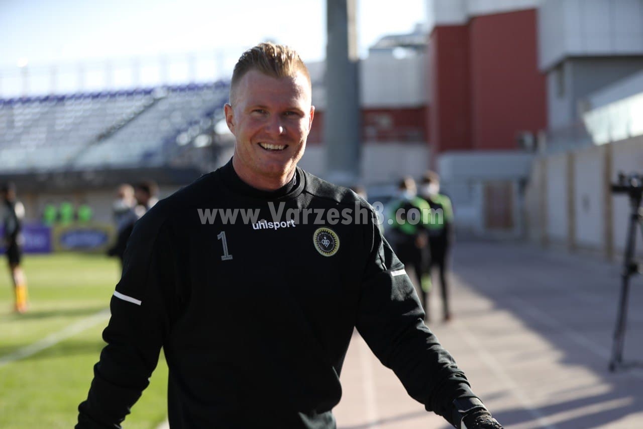چهره خندان کریستوفر کنت پیش از آغاز بازی که قطعا تصور چنین بازی سختی در سیرجان به ذهنش خطور نمیکرد.