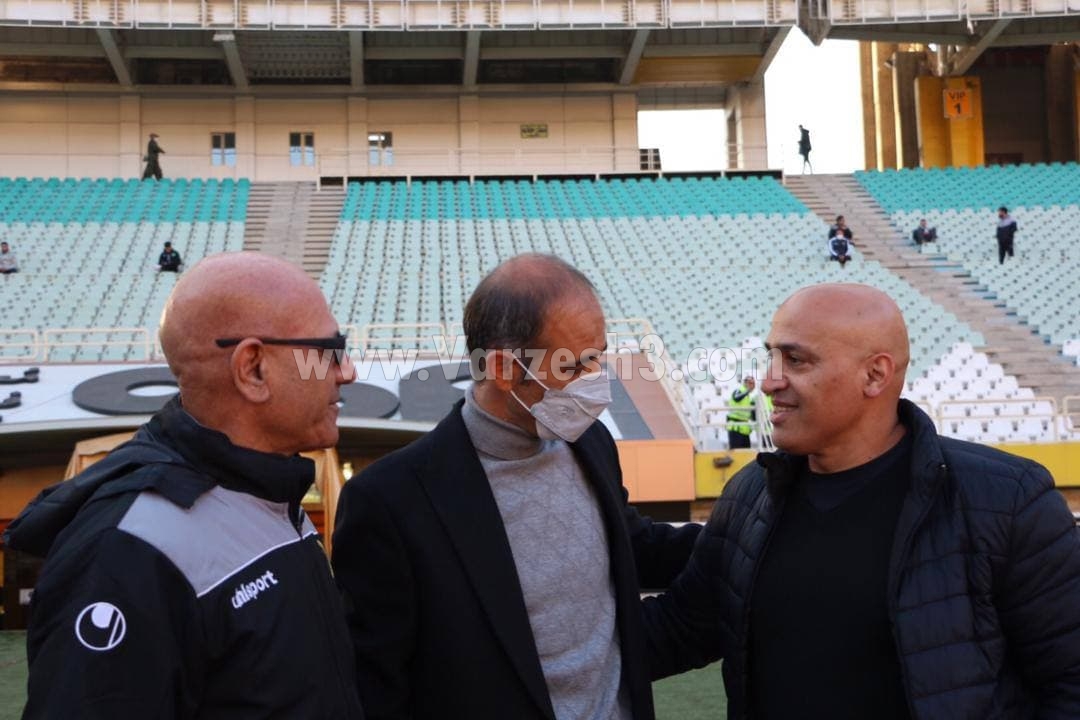 *سرمربیان دو تیم پیش از شروع مسابقه خوش و بش صمیمانه ای با یکدیگر داشتند.