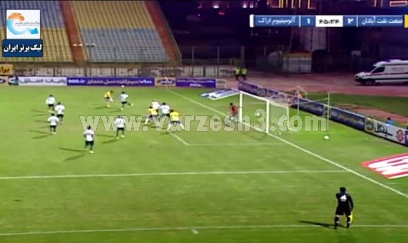 دقیقه 66 (گل دوم صنعت نفت - آفساید بود): صحنه فریز شده نشان میدهد که پای مهاجم صنعت نفت از آخرین مدافع آلومینیوم اراک جلوتر است و به این ترتیب باید آفساید گرفته میشد و گل مردود است.