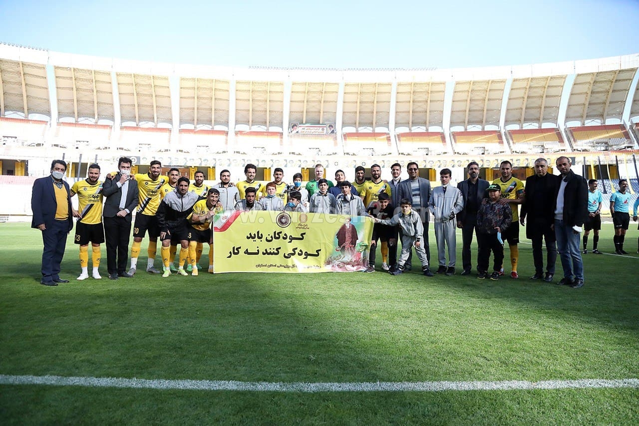 بازیکنان سپاهان با این بنر عکس یادگاری گرفتند تا بهنوعی به مسئولیت اجتماعی خودشان و باشگاه نیز عمل کرده باشند.